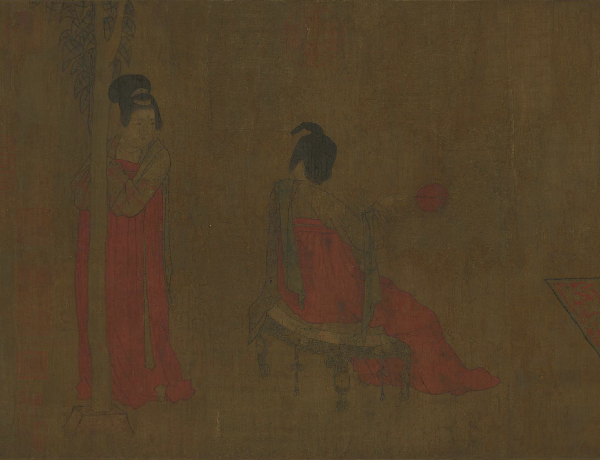 (传)五代南唐周文矩《仕女图》轴(局部)台北故宫博物院藏
