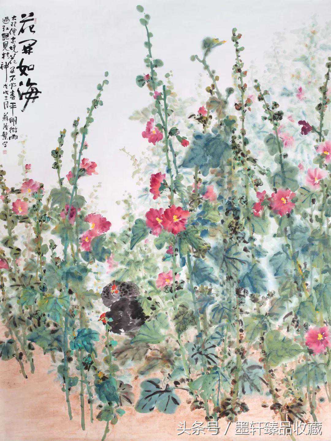 自明清大寫意花鳥畫興盛以來,其重心性,重筆墨的表現形式已成為有清壹代畫壇的主流,金石入畫更是將大寫意花鳥畫的表現推向高潮。蘇毓的畫得其道統,以書入畫,重視心性,既能逸筆草草,又能筆筆逮形,生動逼真,粗細有致,深諳大寫意畫的內在義理。
