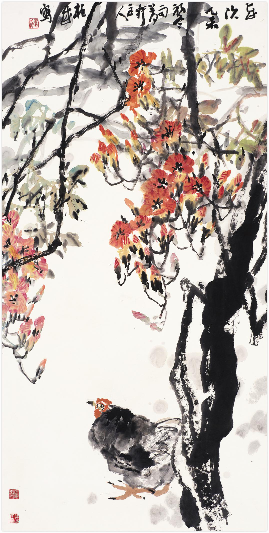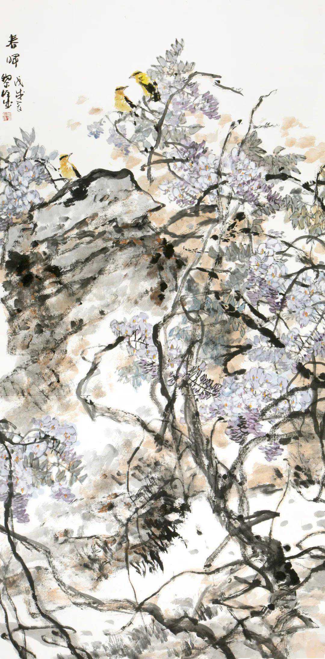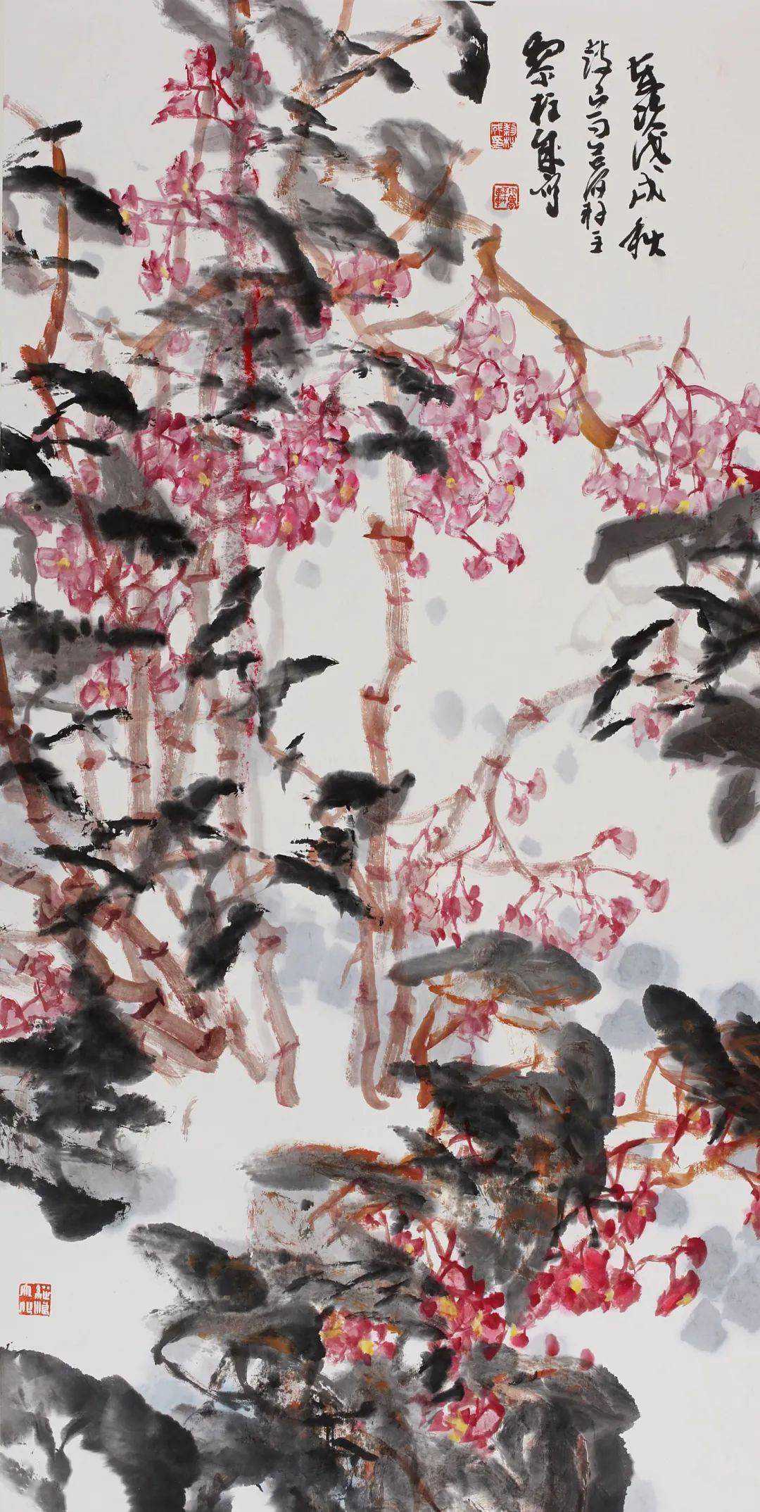 黎柱成的画具有浓烈的岭南特色,纵横均匀带来扑面而来的气息,尤其是他的传统程式和新题材的把握,处理的非常好,他的花鸟画的题材很多,包括海棠、牡丹、木棉都非常有特点。这些传统的题材又是非常难创新的题材,他用自己独特的表达方式呈现出来,是非常难得的。