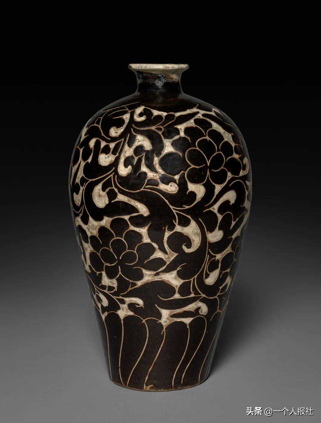 北宋当阳峪窑黑釉铁锈花梅瓶