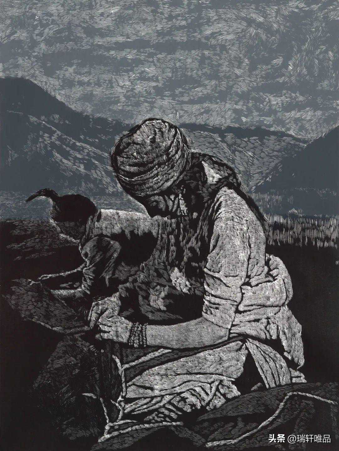 程琳皓阿尼玛卿山下缝毛毡120cm×90cm版画