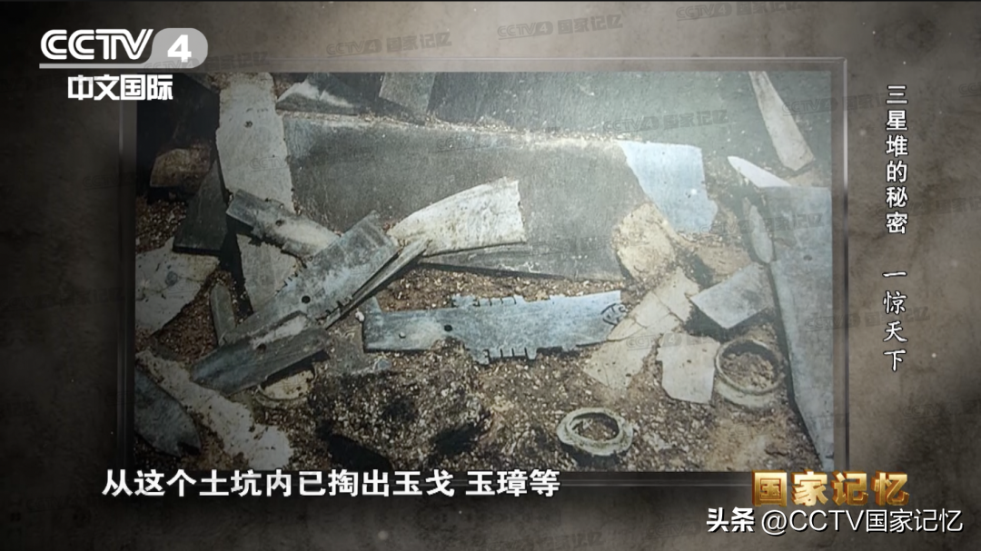 考古队员赶到现场后,只见在斜坡下面的取土处,挖开了一个直径1米左右、深约1.5米的不规则土坑,从这个土坑内已掏出玉戈、玉璋等完整的玉器十几件。