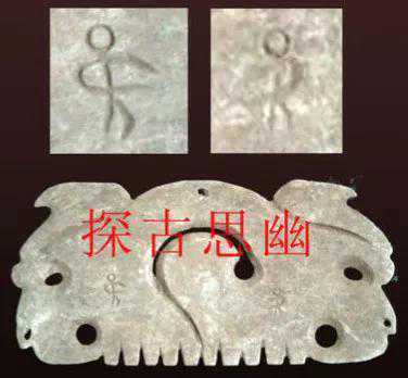 ▲图下部典型红山文化勾云玉佩,出土于积石冢大墓主人胸口,有男有女,都是单人墓。图上,笔者认为是:夏商时期孤竹国玉器。孤竹国墨台氏受赐子姓,但传世家谱记载,实际上出自赢姓伯益。