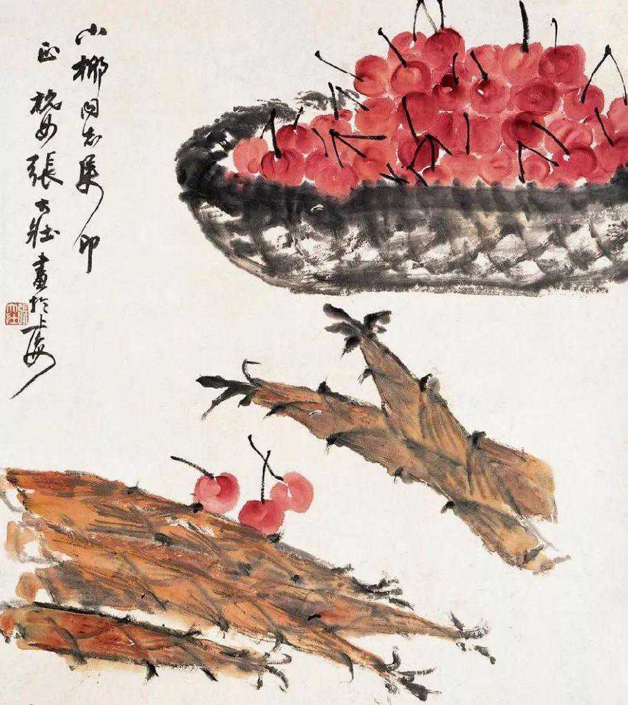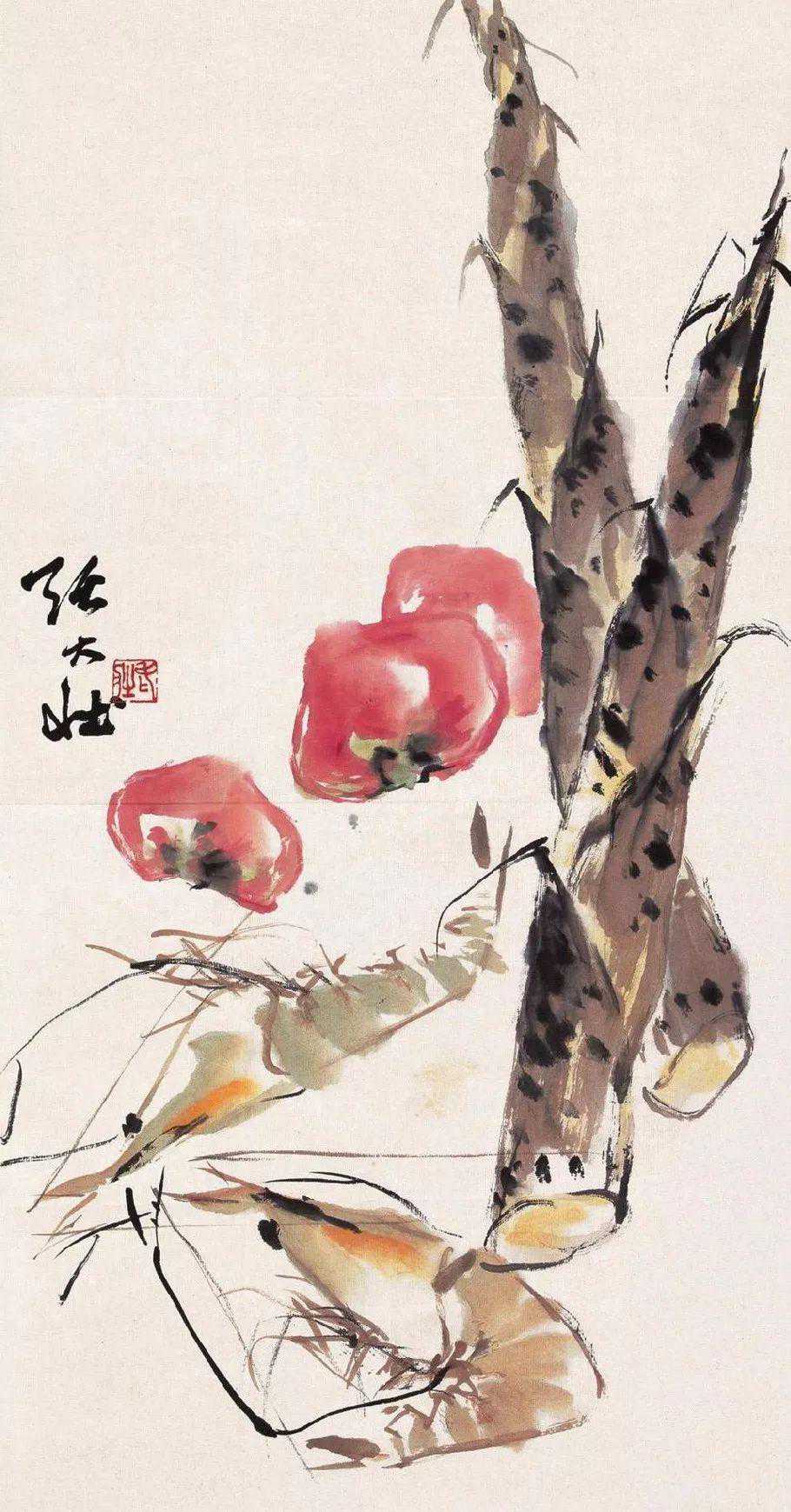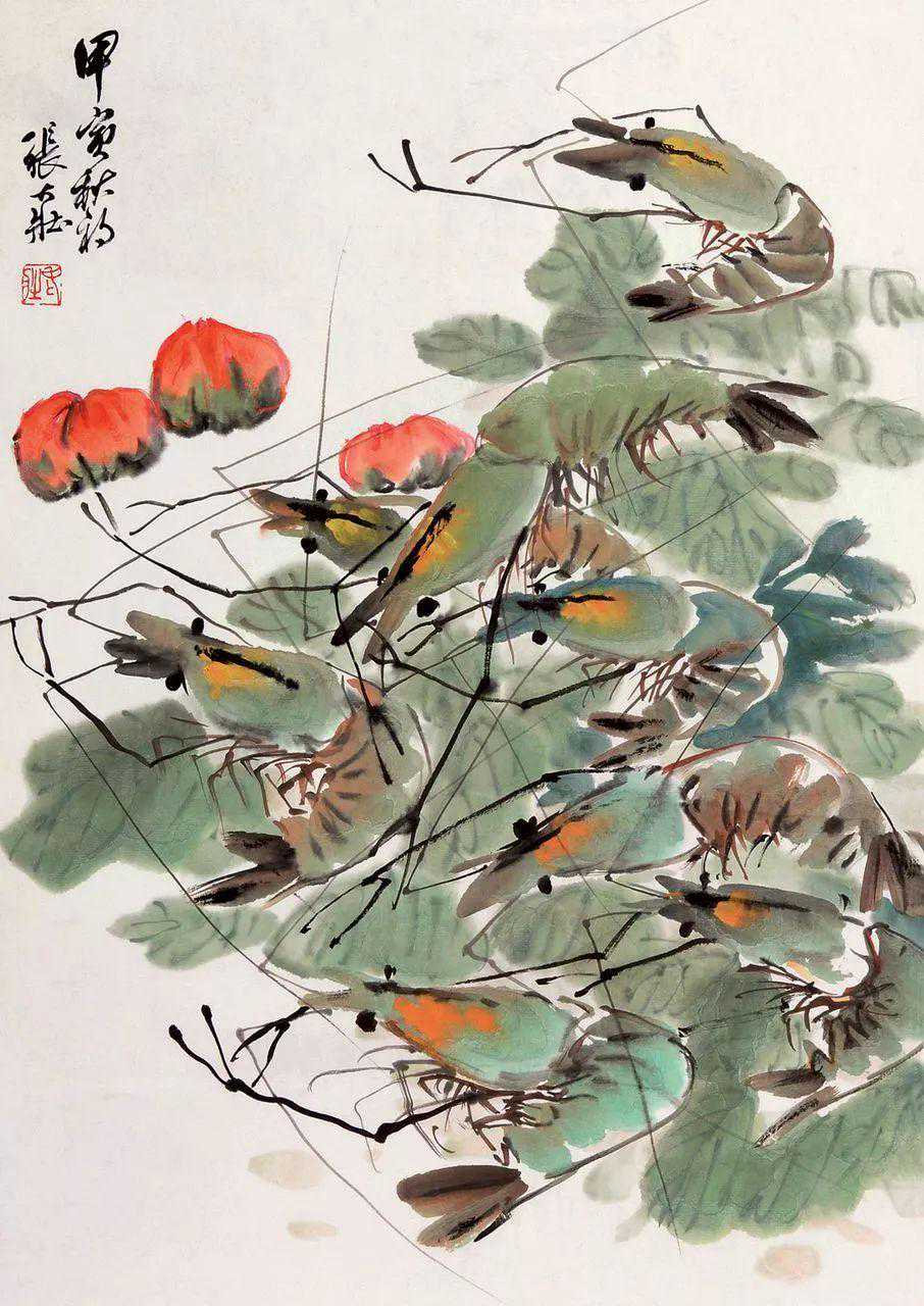 张大壮1916年到上海,随李汉靖学习恽派花卉,又从汪洛年习山水。1920年入商务印书馆任美工,次年为收藏家庞济元“虚斋”管理书画,得览名迹,心摹手追,画事大进。晚年渐涉徐渭、陈淳、朱耷等人,笔墨老辣,纵放洒逸;他特别喜欢画蔬果、虾蟹之类,生动活脱,别具韵致;偶尔画山水,风格近王原祁,用笔生涩清劲。