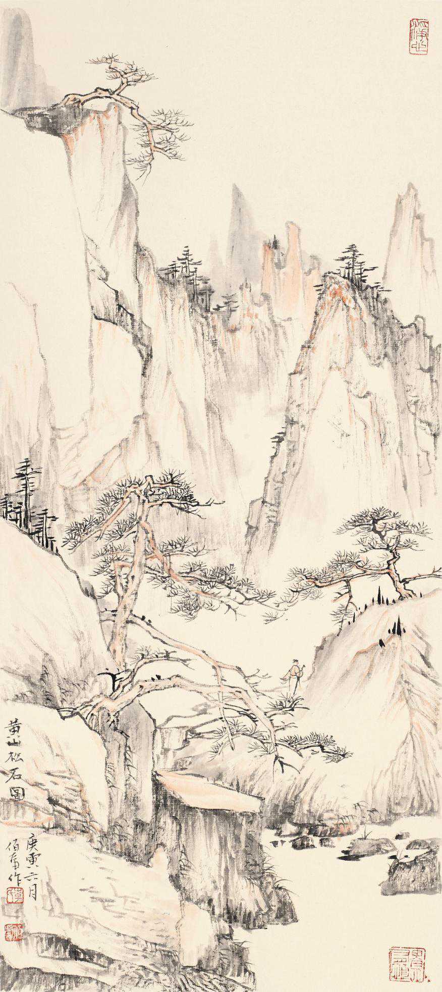 黄山松石图66cm×27cm2010年