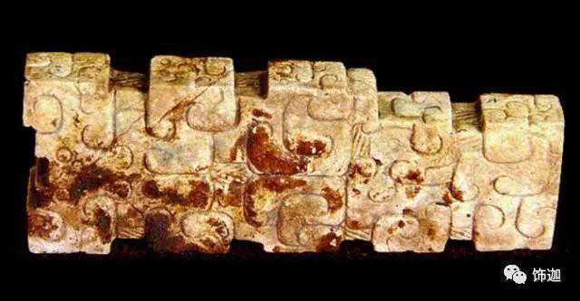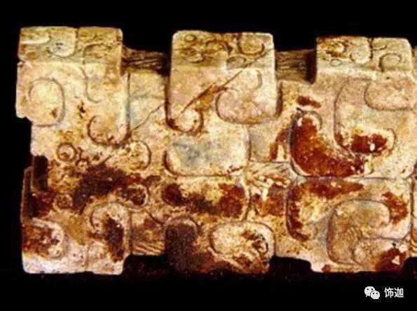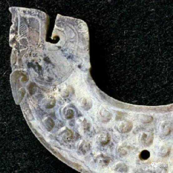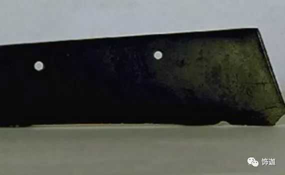 受沁的程度有重有轻,重的地方还带有棕红或黑红的块状物。沁成这种程度需要千年以上的时间。