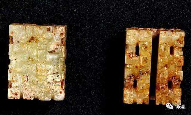 下面这块玉器可见底下一层受地表水沁变色。