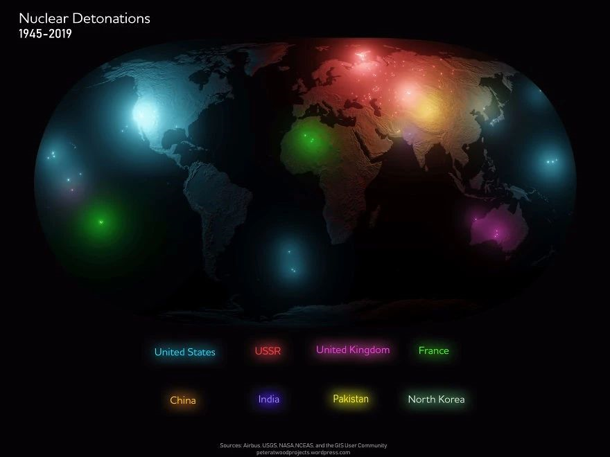另外一种便是做具有威慑力的核武器。从1945年7月16日开始,美国的第一枚核弹爆炸后,在接下来的74年里,全世界有超过两千次核爆。