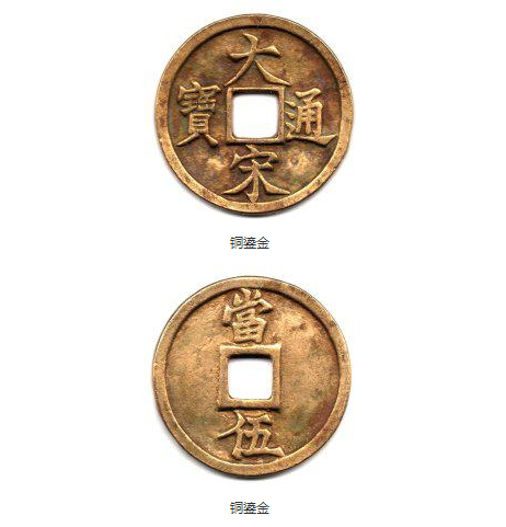 此外,从此当伍钱之形制来看,其径约44毫米,乃为通常折十型大小。这一突出特征,首先表明,其形制是和当拾之式伴生协调的,即当拾式为50毫米余,超过通常折十型形制,当伍式超过通常折五形制。故,因此一点,即可为当伍式之可信度大加其分矣;其次,当拾、当伍两式钱之非常形制,表明这两钱的基本性质,完全有别于通常行用钱规制,即其完全有可能为非行用钱性质。相反,却似乎是特别铸制的大宋国号纪念币。这一点,也可以从当拾钱比较稀罕,当五钱长期迟迟不出,近年出后量更少于当拾钱,总体遗存稀少而得到某种证实。