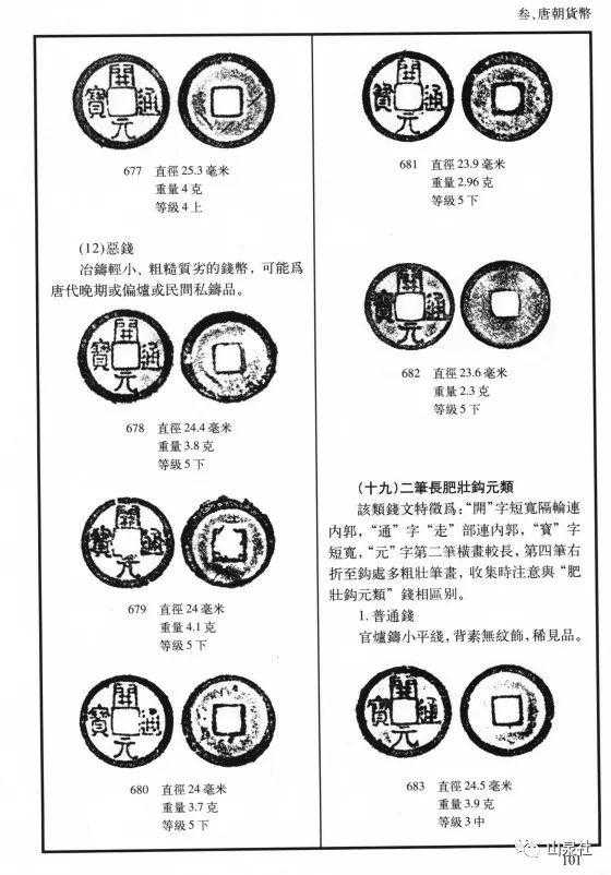 里面有开元通宝、乾元重宝、五代十国钱币等,对开元通宝基本版式的划分已经非常合理,而且有了低头通矮元。只是短头元的一些版式尚欠缺。
