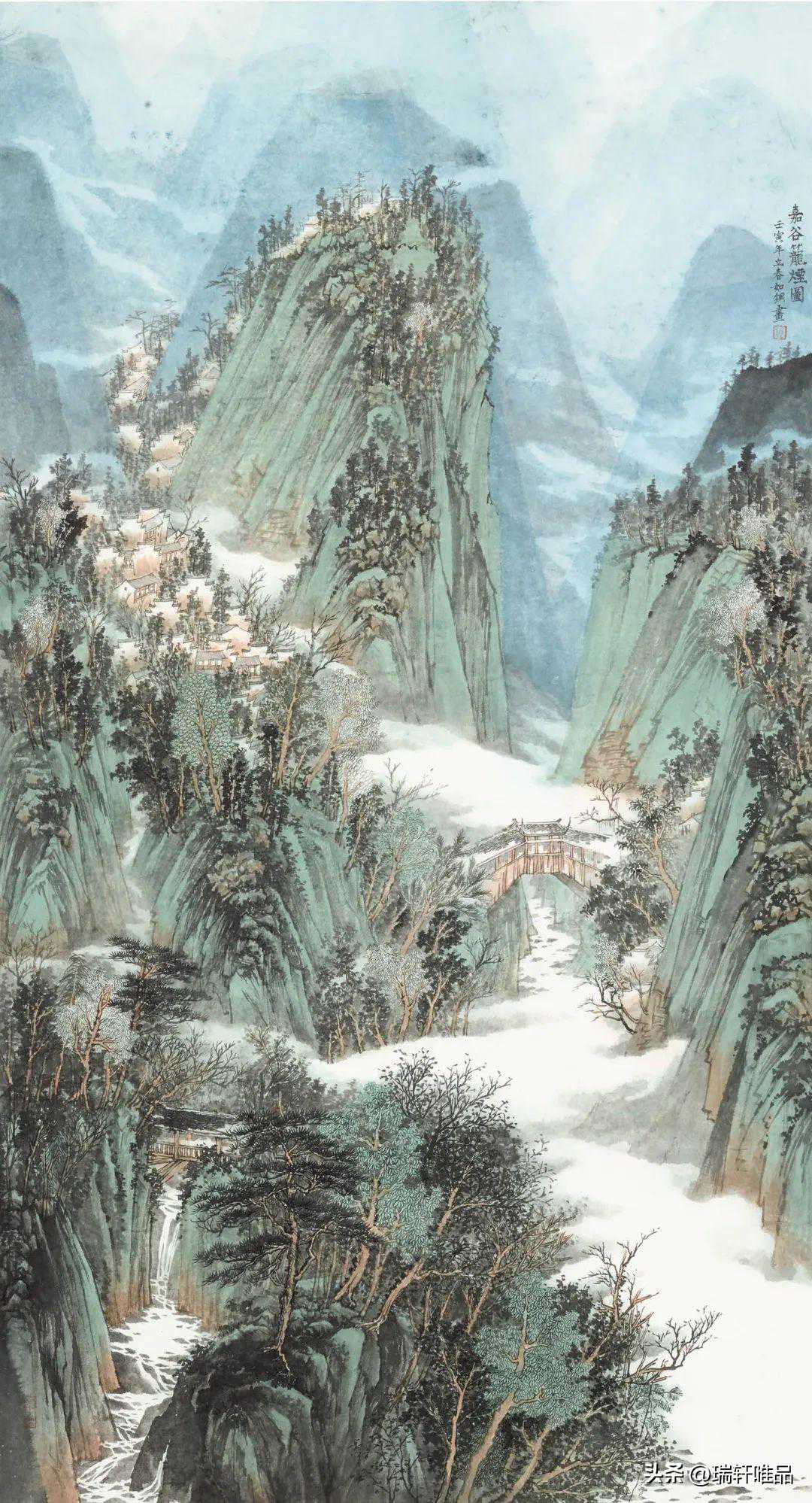 秦玲青绿山水180cm×96cm