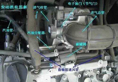 电子油门:说是油门,其实和油没有一点关系的噢,它连接的是进气总管和进气歧管,控制的是发动机进气量,所以正确说法应该是电子节气门。发动机控制模块会根据进气量计算出喷油量,这样就能控制发动机的转速及输出功率了。