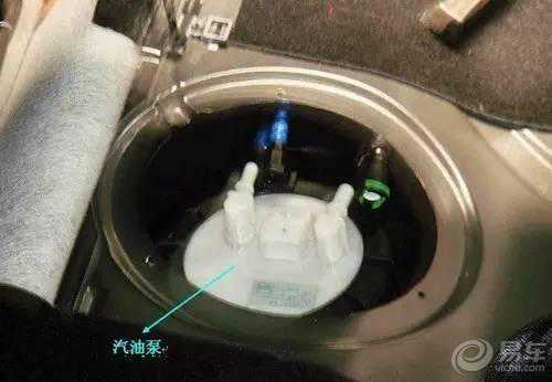 盖子拆下后就可以看到汽油泵了,它实际是安装在油箱上,但拆油箱很麻烦,所以在这个地方开个孔,在汽油泵损坏时可以方便的更换。