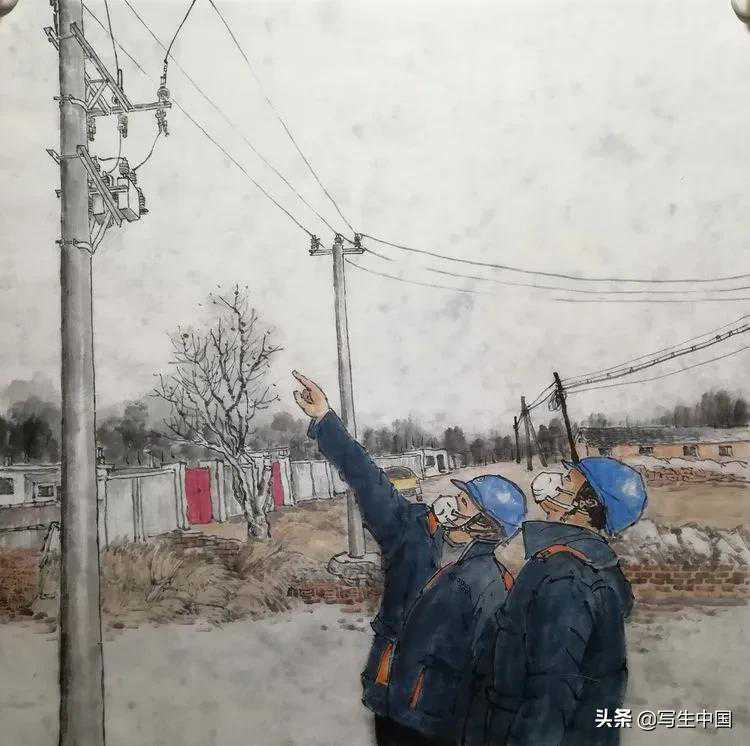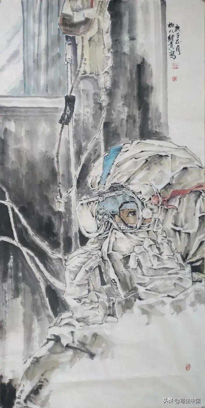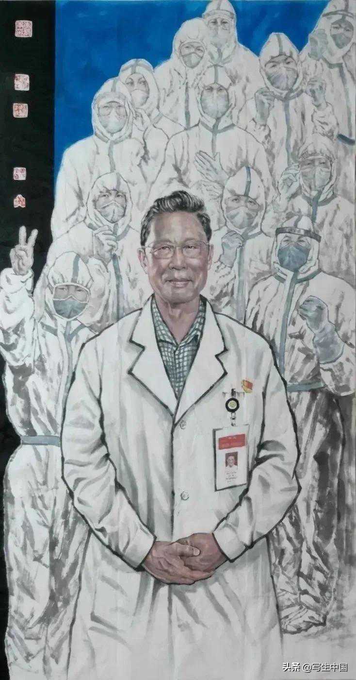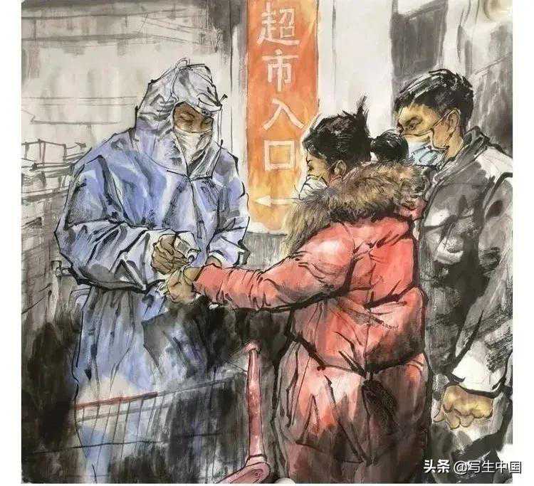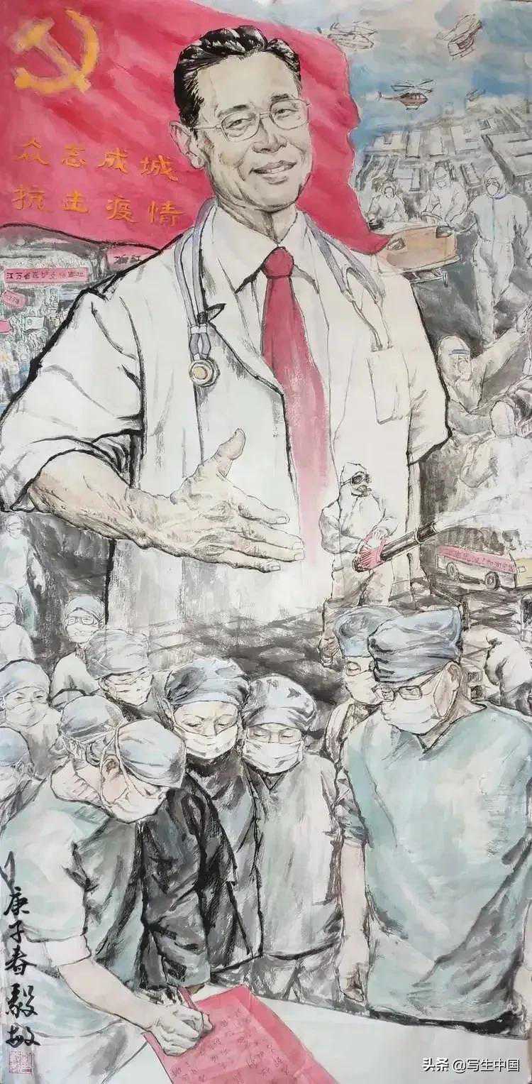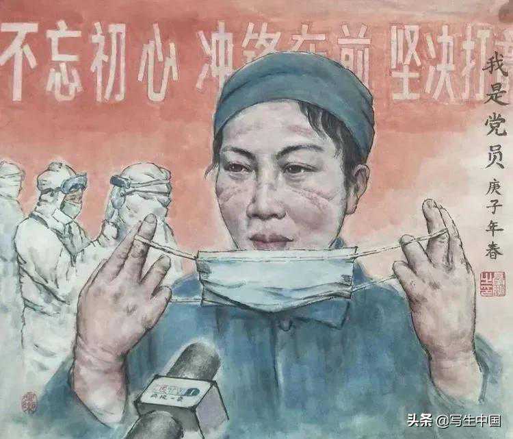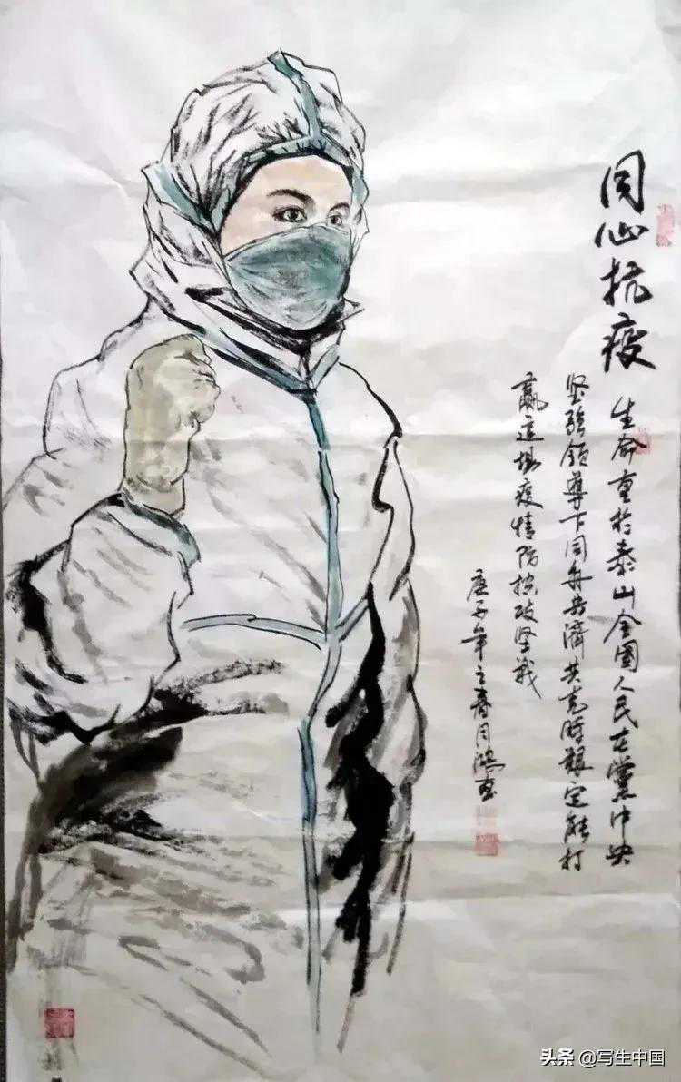 《拿画笔的抗疫战士》中国画蒋洪亮