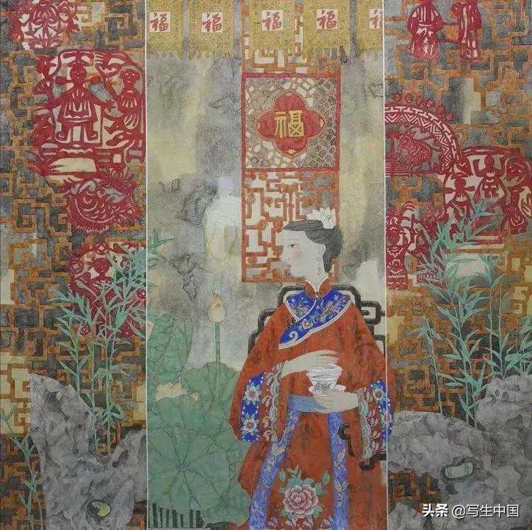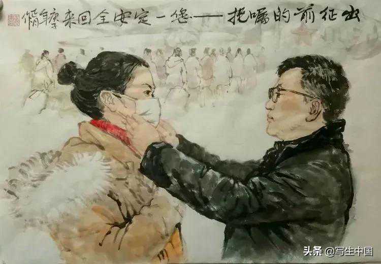 《小门神——你没戴口罩》中国画60x90cm聂鹏