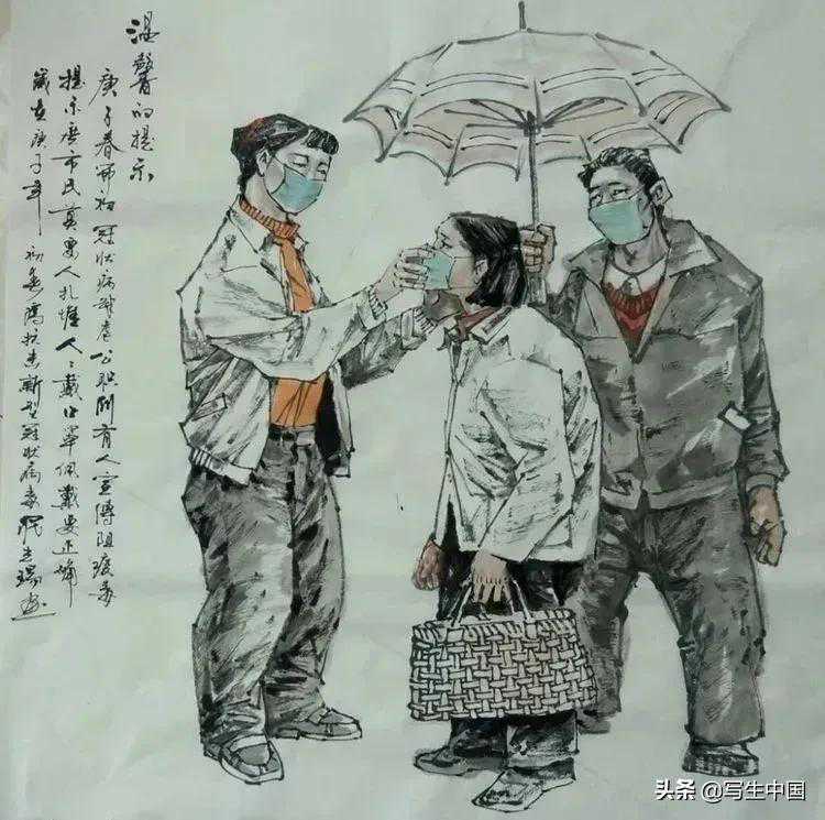 《全民动员,打胜疫情防控人民战争》中国画苏振福