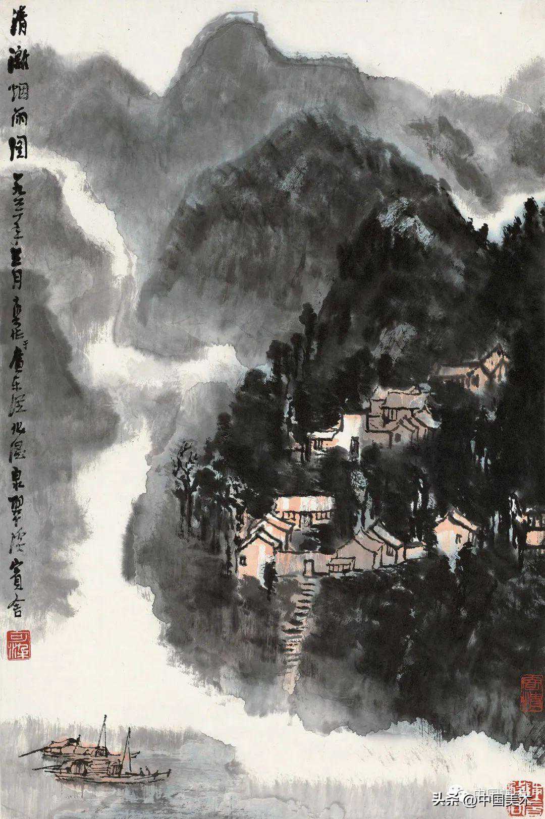 李可染江村清晓