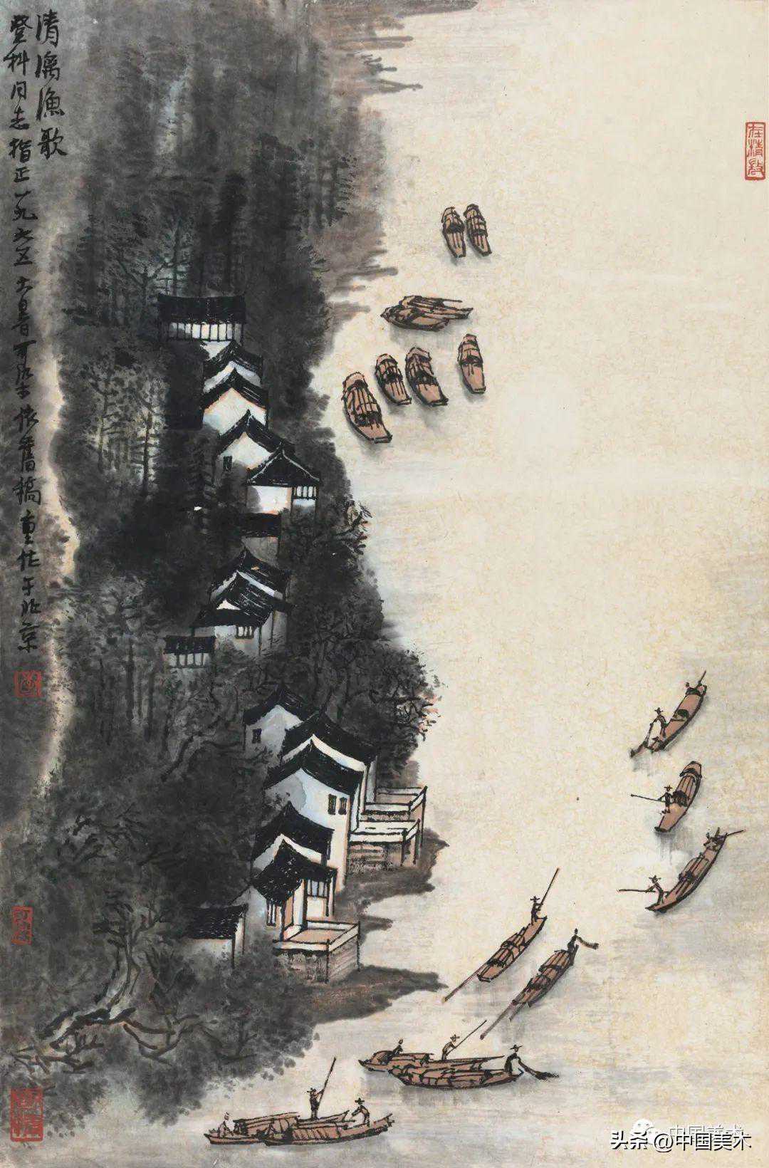 李可染清漓渔船图