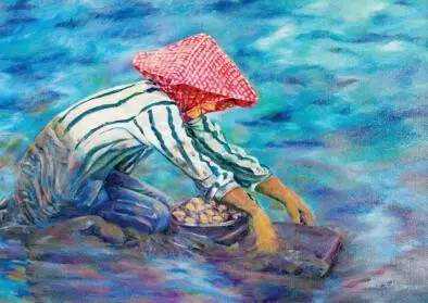 钟秀枝《采蛤蛎》油画65cm×50cm15P2017