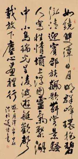 洪塔美《游日月潭(自撰诗)》135cm×70cm2016