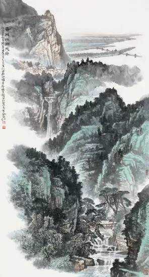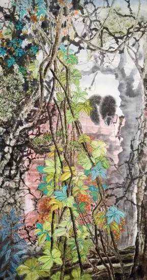 施秉伟《又是一年桃花开》国画138cm×69cm