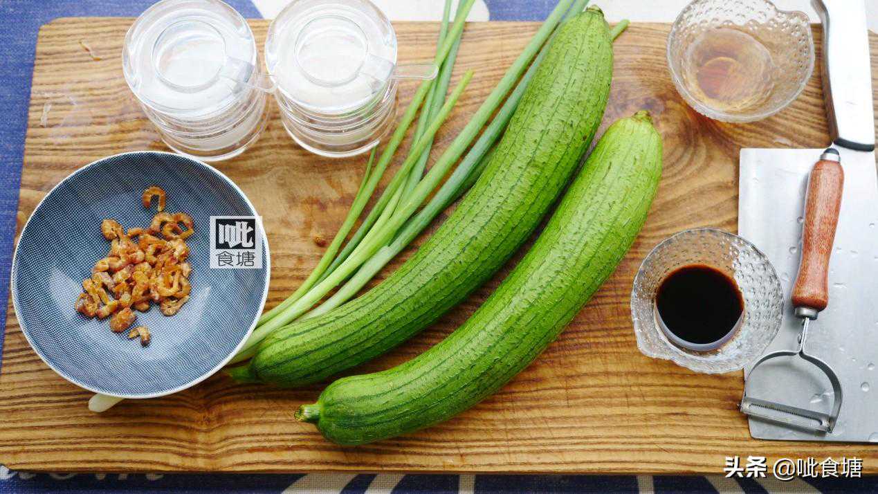 1,材料:丝瓜,虾米,小葱,生抽,盐糖