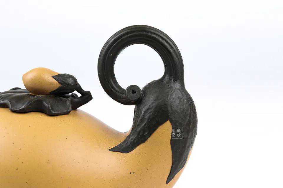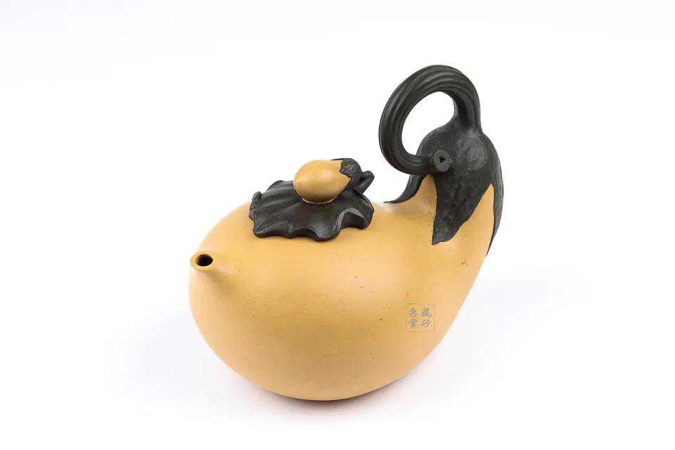 以茄蒂为壶把,生动有趣,小茄子为壶钮,简洁的器型,优雅而不失艺术魅力。