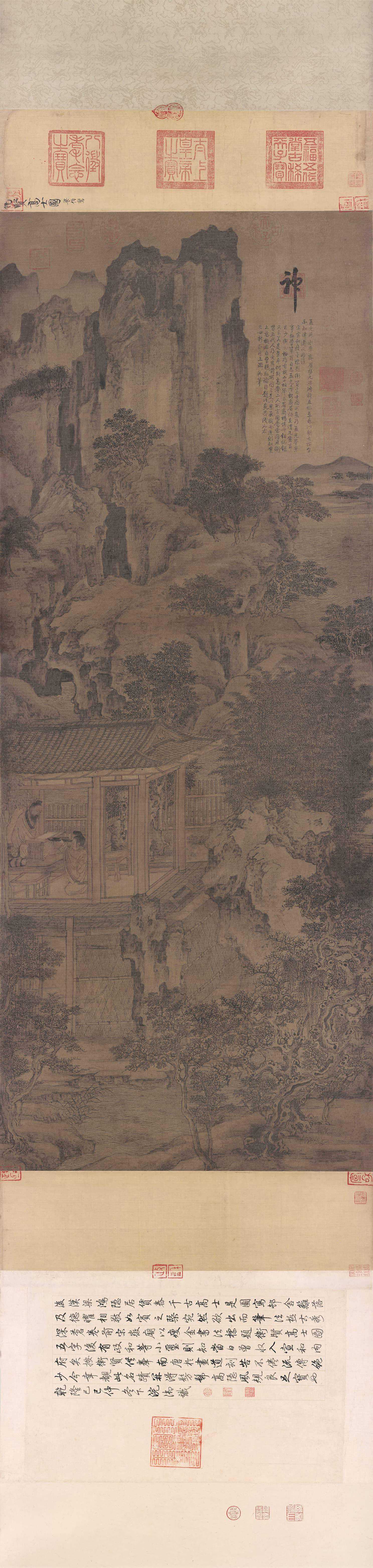 该图是竖式构图,其装裱法是手卷式,此系典型的北宋宣和年间的装裱法,世称“宣和装”,是留存至今极为罕见的“宣和装”原裱,后人的跋文均按手卷的格式书写。