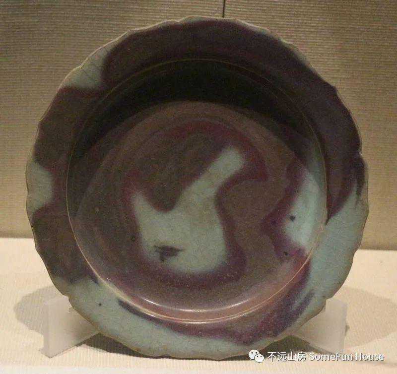 河南博物院藏金代钧窑天蓝釉红斑葵口盘1976年方城县拐河菜园出土。