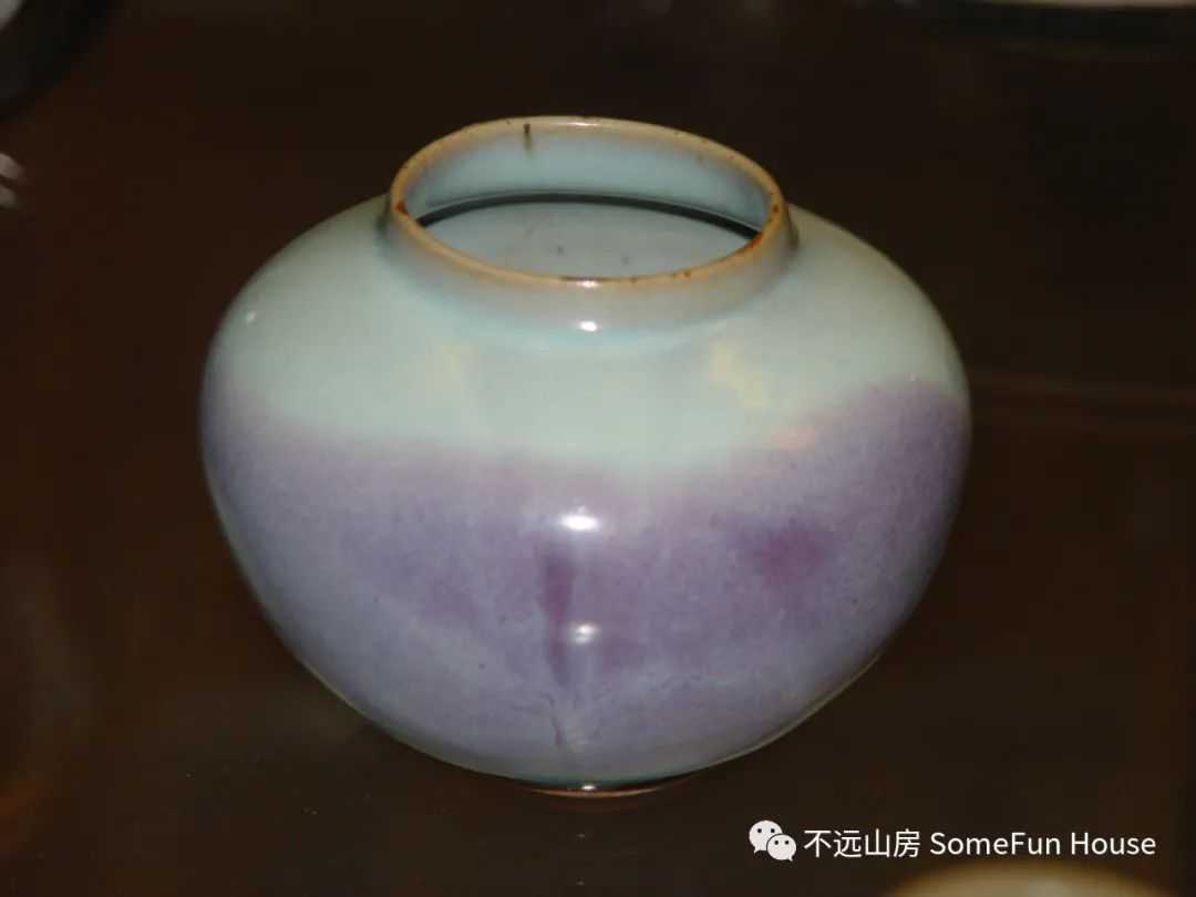 大都会艺术博物馆藏金代钧窑天青釉玫瑰红窑变鸡心罐