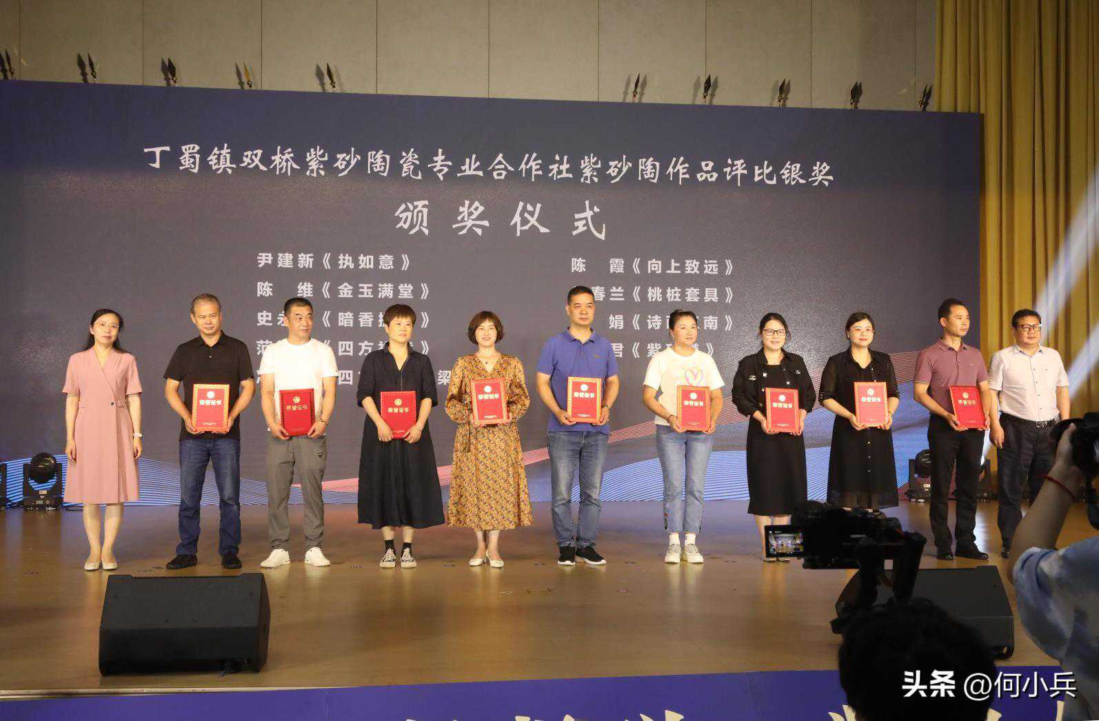 6月18日,宜兴市丁蜀镇双桥村紫砂陶瓷专业合作社成立大会暨紫砂陶作品评比颁奖仪式举行。活动现场,电视专题片《千年银杏百年紫砂》、歌伴舞《梦里双桥》等文艺节目安排围绕村庄的古往今来,描绘了双桥村民的未来生活场景与美好憧憬。徐元明、许诚、范小君、王智明等人被聘任为丁蜀镇双桥村紫砂陶瓷专业合作社推广宣传大使,村庄与江苏省陶瓷艺术实训基地、景德镇陶瓷大学设计艺术学院、达观说器直播平台等有关方面签署了一批战略合作项目,这个远近闻名的紫砂专业村通过一系列举措来推动乡村振兴的创新实践。