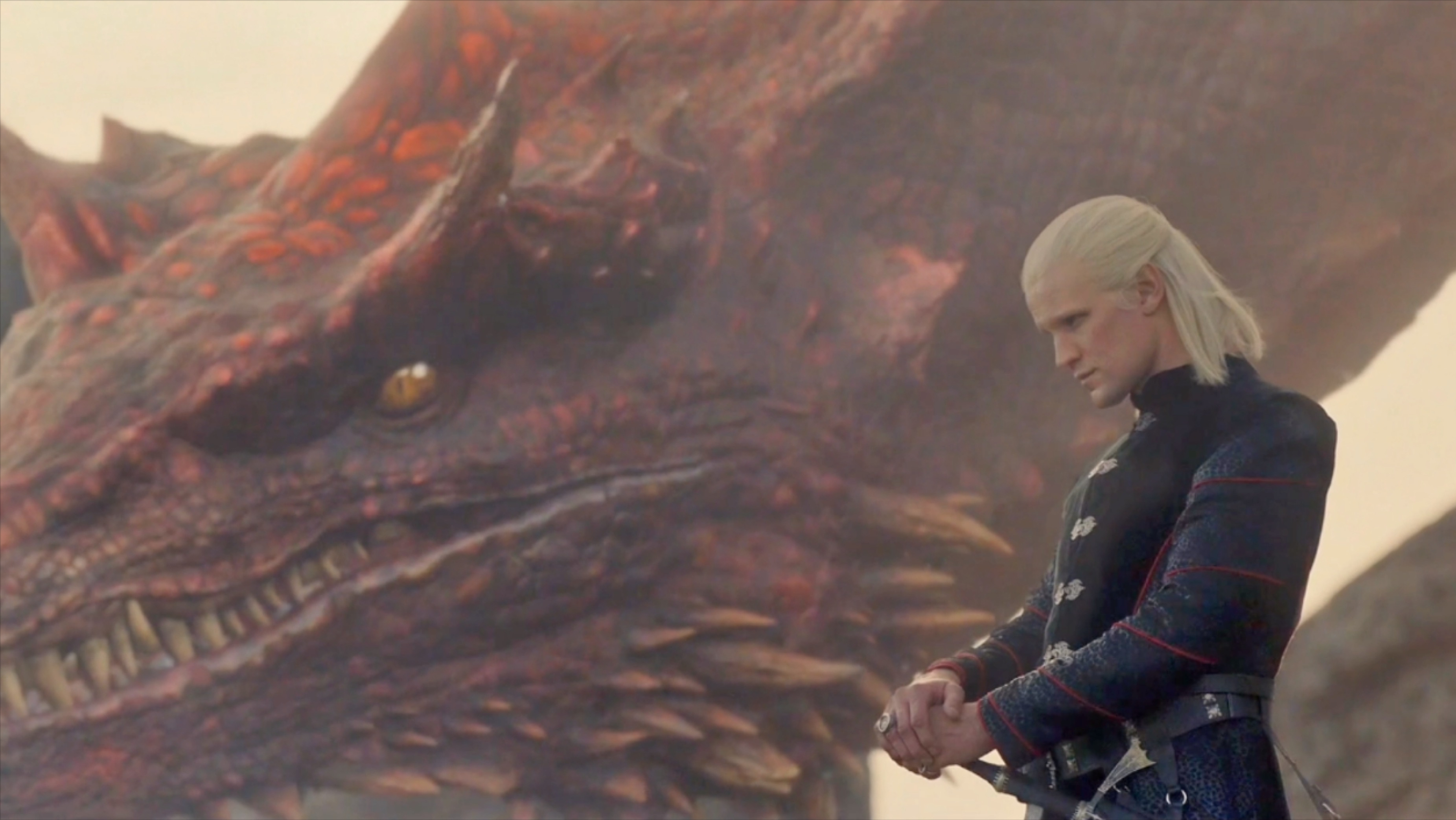 比如我们能够明显看到两只后腿上都长着一片翼膜,而普通的飞龙没有这一结构,他们普遍都是两条很粗壮的后肢,此外科拉克休尾巴上也带有一点点翼膜,而普通龙是一条很直的尾巴,基于其别具一格的身形,还有个额外的称号叫血虫。科拉克休的身上还有两点让我印象非常深刻,首先是它与主人戴蒙王子之间达成的那种默契,在其他的组合当中是不常见的。虽然龙会听从主人的号召与口令,但科拉克休已经达到了去分析当前的局势,以及判断主人情绪的地步,他会特别能够感知到主人心中的想法,也特别的护主。