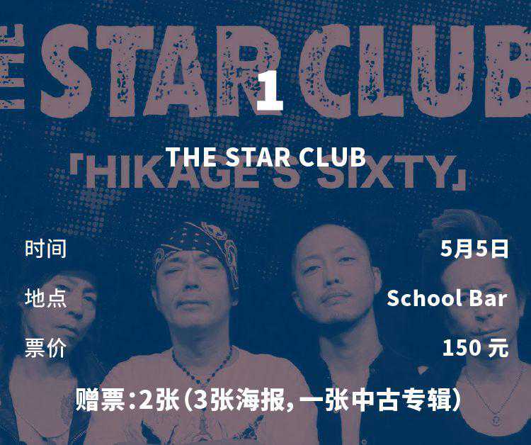 今年,THESTARCLUB将再次来到中国参演太湖迷笛音乐节,最后将在北京新朋克圣地SCHOOL开展60岁生日派对、届时将有嘉宾HELLCITY及OUCH一起向HIKAGE致敬。