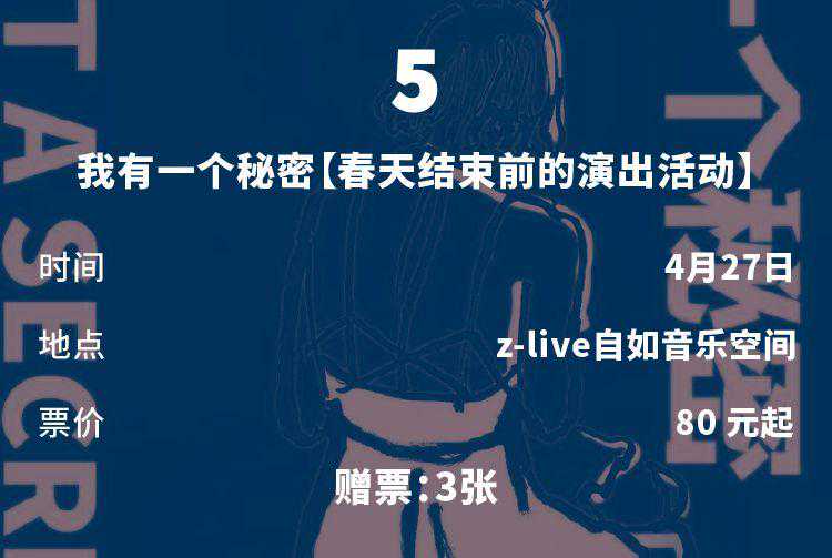 小时候总会把秘密写在日记本里,再小心翼翼用锁锁好,秘密是写出来了,但却少了点跟人倾诉的温度。这次我们创立了主题为“我有一个秘密”的演出,在这个倾诉的热情都在社交网络上散尽的年代,不如扔掉手机一晚,将秘密写下来,在这个春天结束之前,也许有不少藏了一个春天没说出的话,可以尽情的倾诉一番。