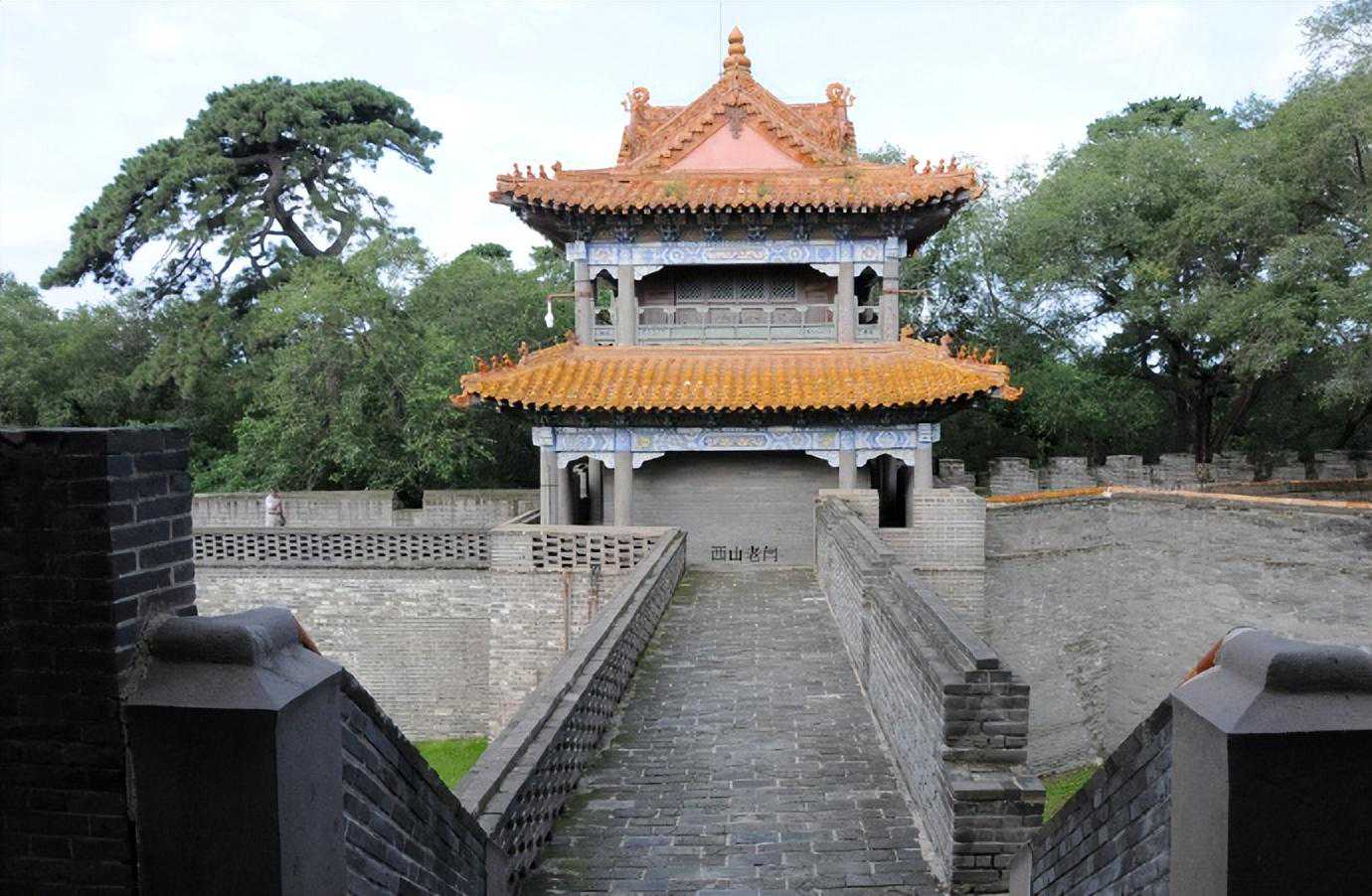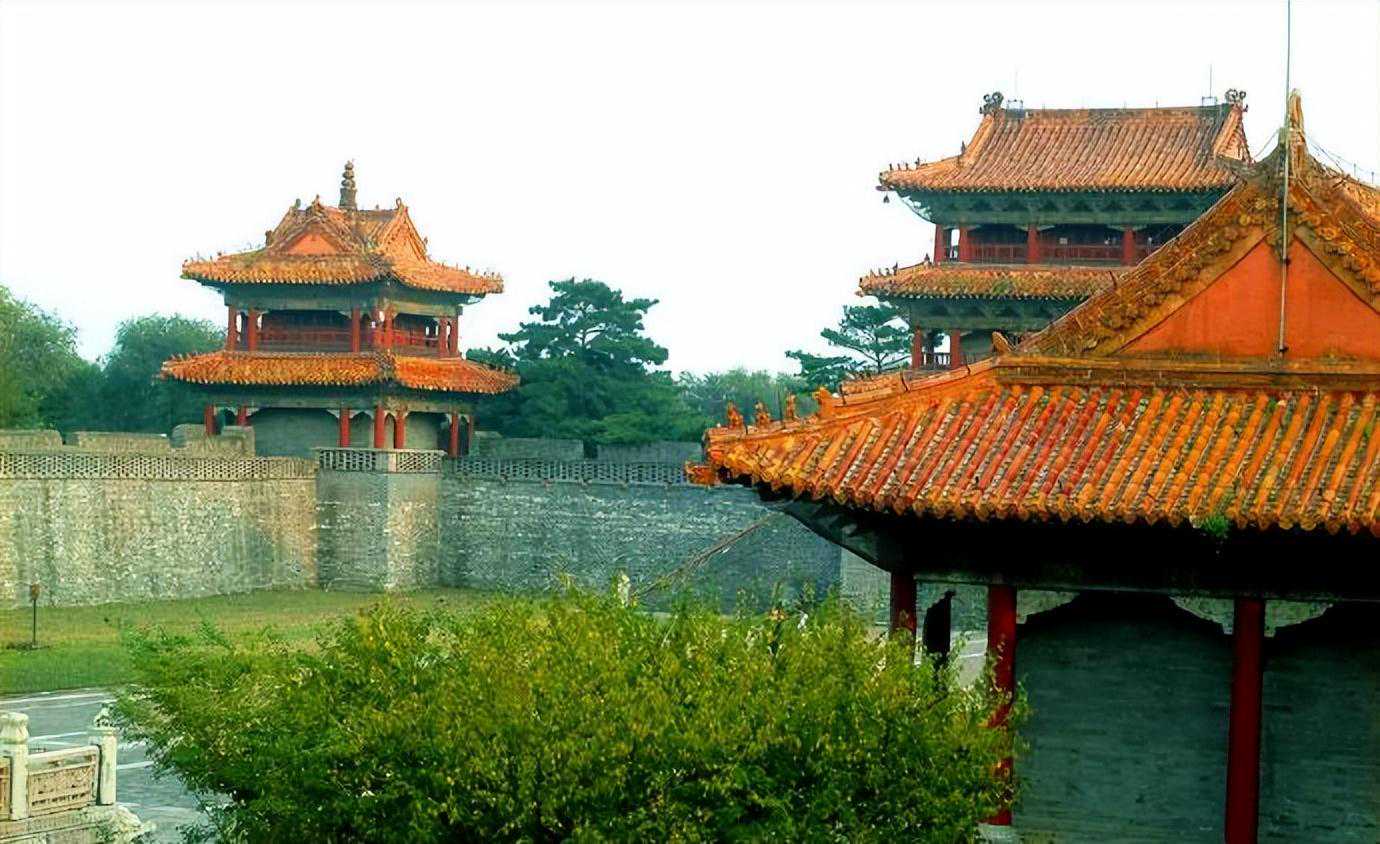 方城四角各有一座二层重檐歇山式角楼。方城与外围的风水墙形成了内城外的格局,城堡全部采用砖石砌筑而成,将隆恩殿竺主体建筑围在中央,起到了防御作用。