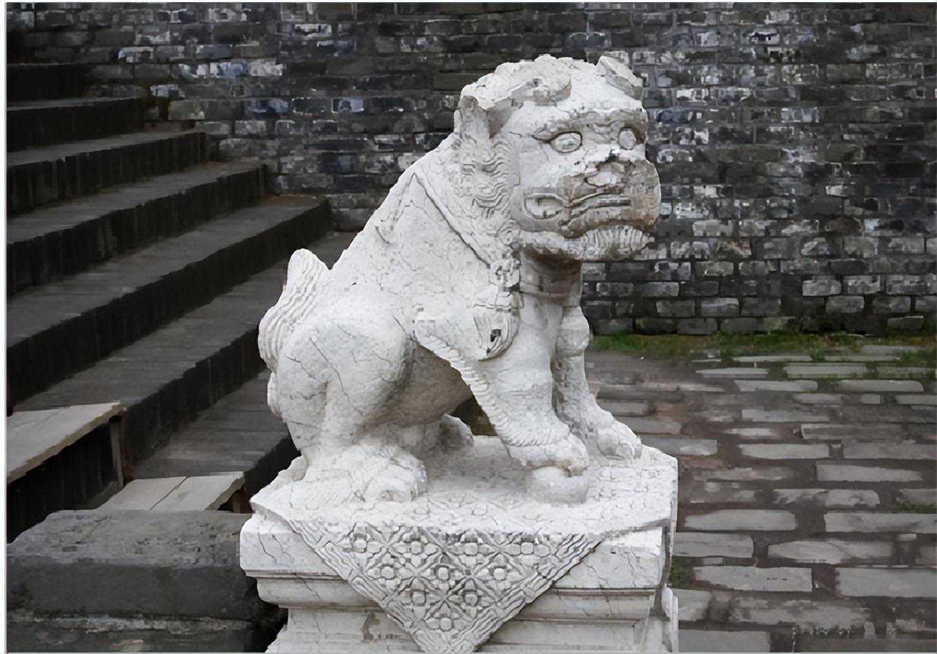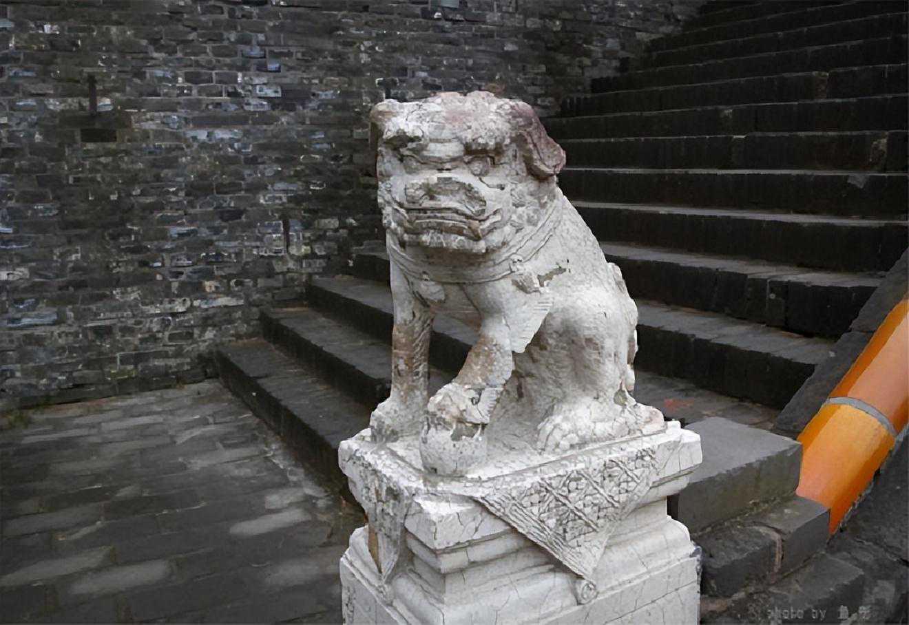 方城内的隆恩门内东西两侧,各有一下城楼的梯道,此为东侧梯道口处的汉白玉石狮子。