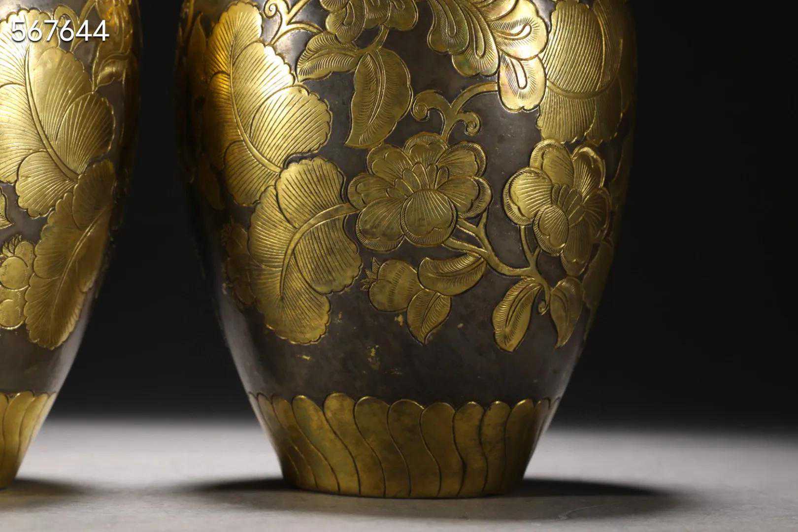 旧藏鎏金花卉纹赏瓶