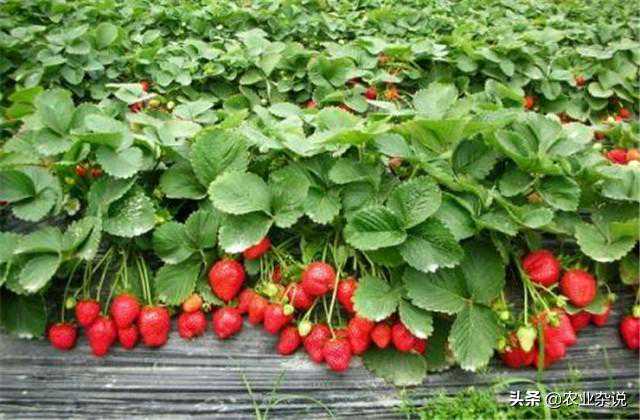 ③地毯式栽植地毯式栽植就是在定植时按较大株行距栽种,植株上长出的匍匐茎在株行间扎根生长,直到均匀地分布满畦面形成地毯状。也可让匍匐茎在限定的范围内扎根,长到规定范围以外的一律摘除,可形成带状地毯,地毯宽度和作业道可以同宽,在果实采收之后,在作业道上培育匍匐茎苗,再把畦内老苗去除变为作业道,通过畦和作业道的交替变更进行更新。