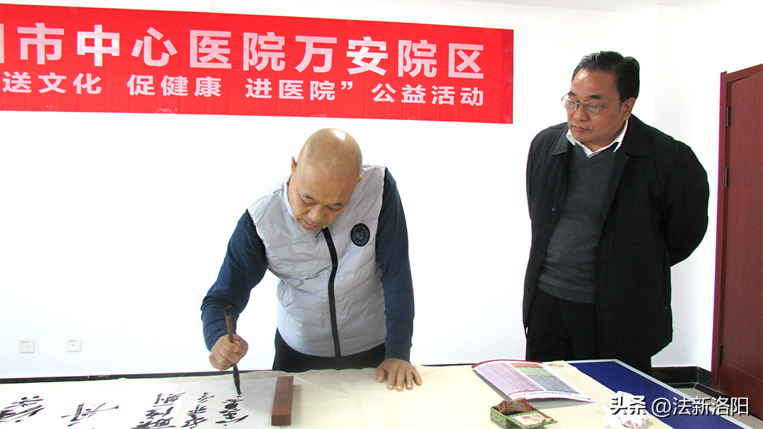 惠风和畅遥相迎,挥毫泼墨大手笔。12月8日,应郑州大学附属洛阳中心医院邀请,洛阳书画名家走进该院万安院区,参加“送文化、促健康、进医院”公益活动,共计创作书画作品近百余幅,赢得满堂彩。