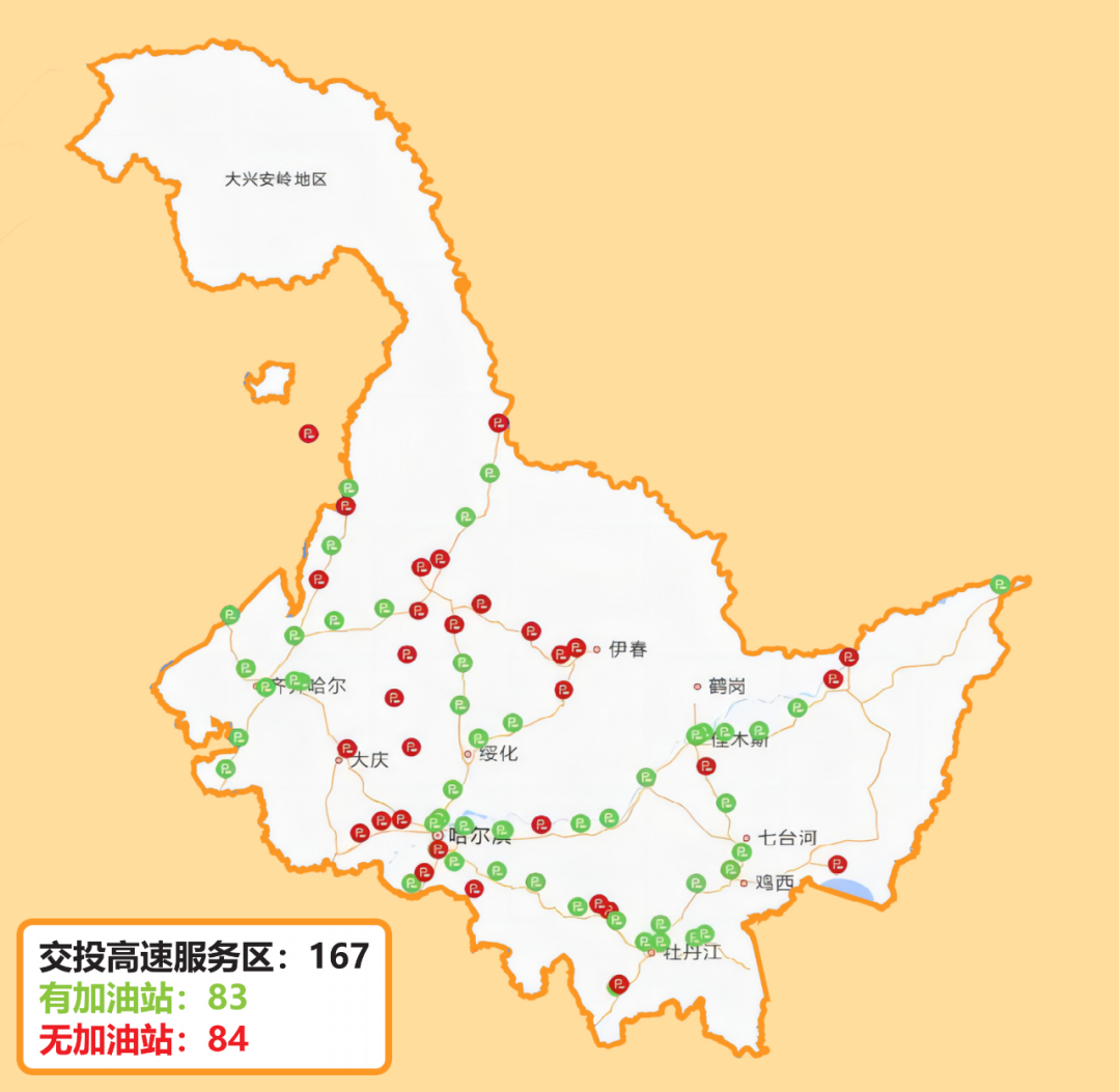 3.哈牡高速:阿城加油站、平山服务区、亚布力服务区。