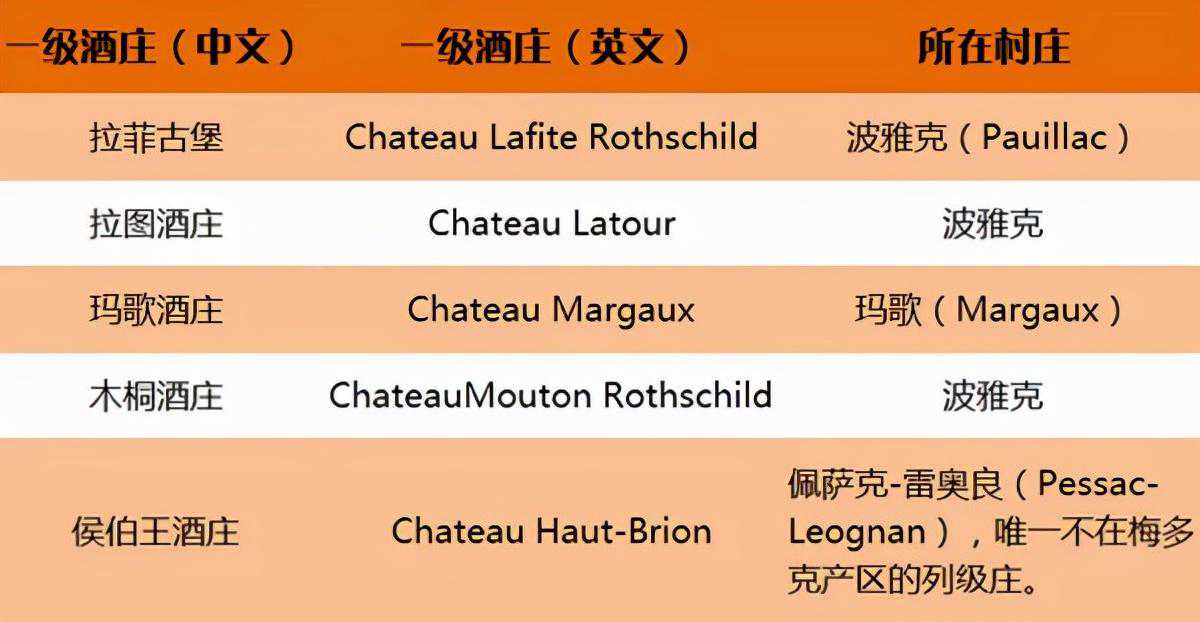 1、一级酒庄(PremiersCrus)