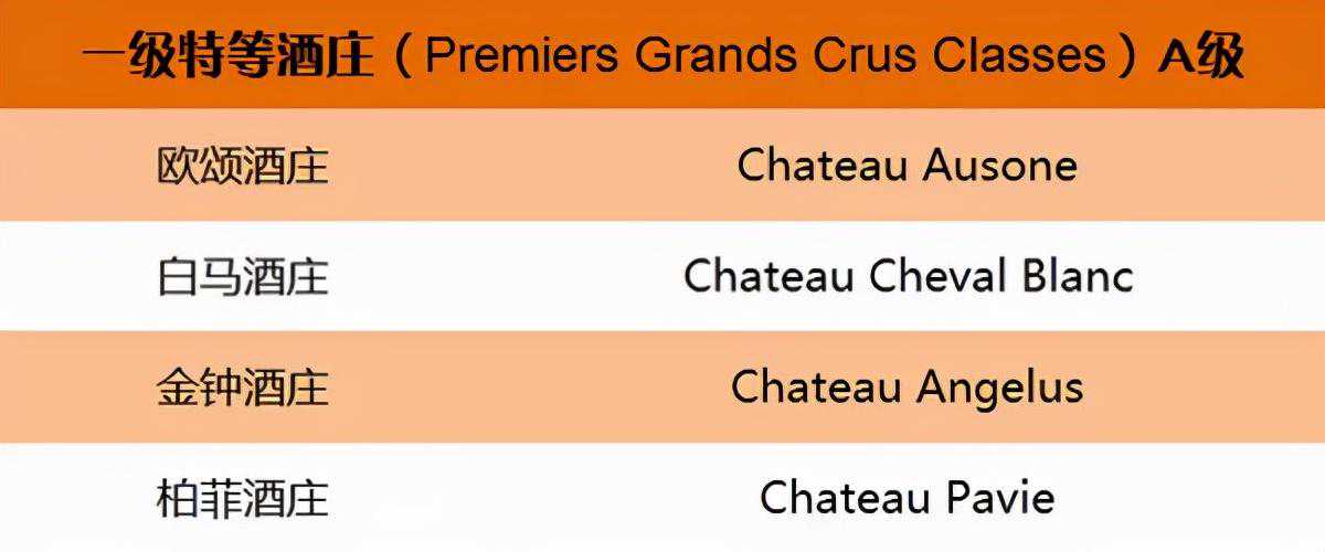 1、一级特等酒庄(PremiersGrandsCrusClasses)A级