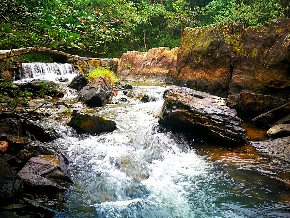 走在林荫小道上,耳边水流声不断,不经意间抬头,总是能发现水流沿着石阶飞涌而下,或细水长流或激流直下,或清新或壮观。