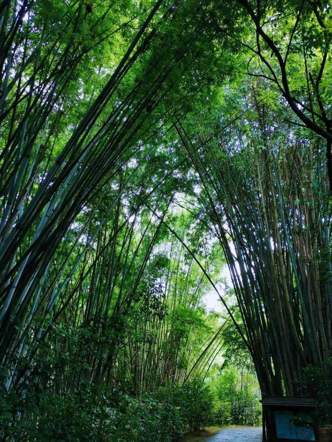 一路有竹为伴。渔竿竹、金镶玉竹、麻竹、粉丹竹、罗汉竹、勒竹、满山跑竹等,徜徉在竹子的世界里,观竹之余还可以品竹“七德”,感受竹子的风韵。