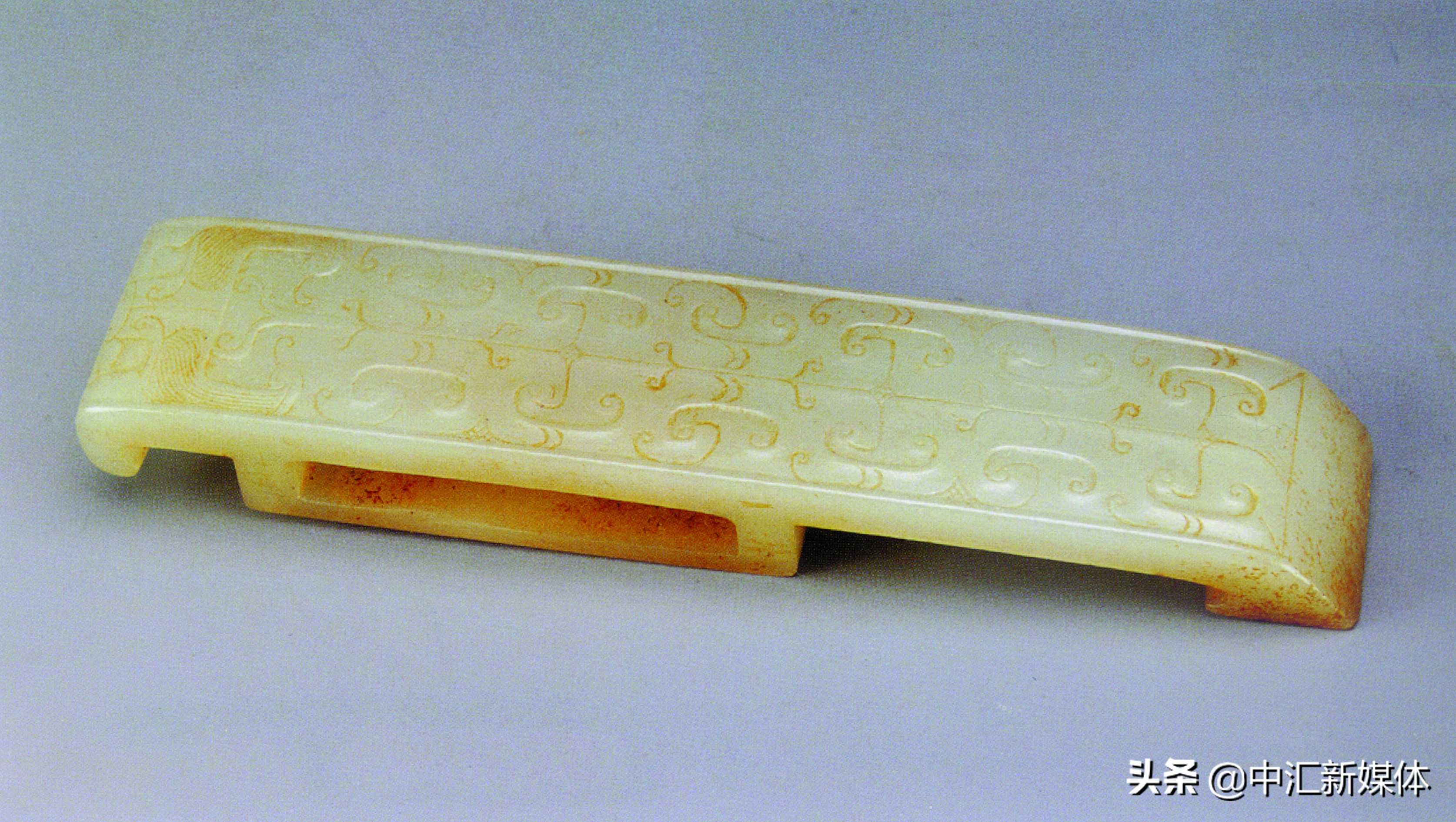 玉器上纹饰极为丰富精彩,所反映的内容也极其广泛,涵盖社会生活的方方面面。仅举两例:在礼器上,镌刻大面积图案,是三星堆玉器的特色。玉边璋上复杂、神秘的纹饰,被解读为蜀山祭祀图(也称蜀王祈子图)。但真正含义不得而之。
