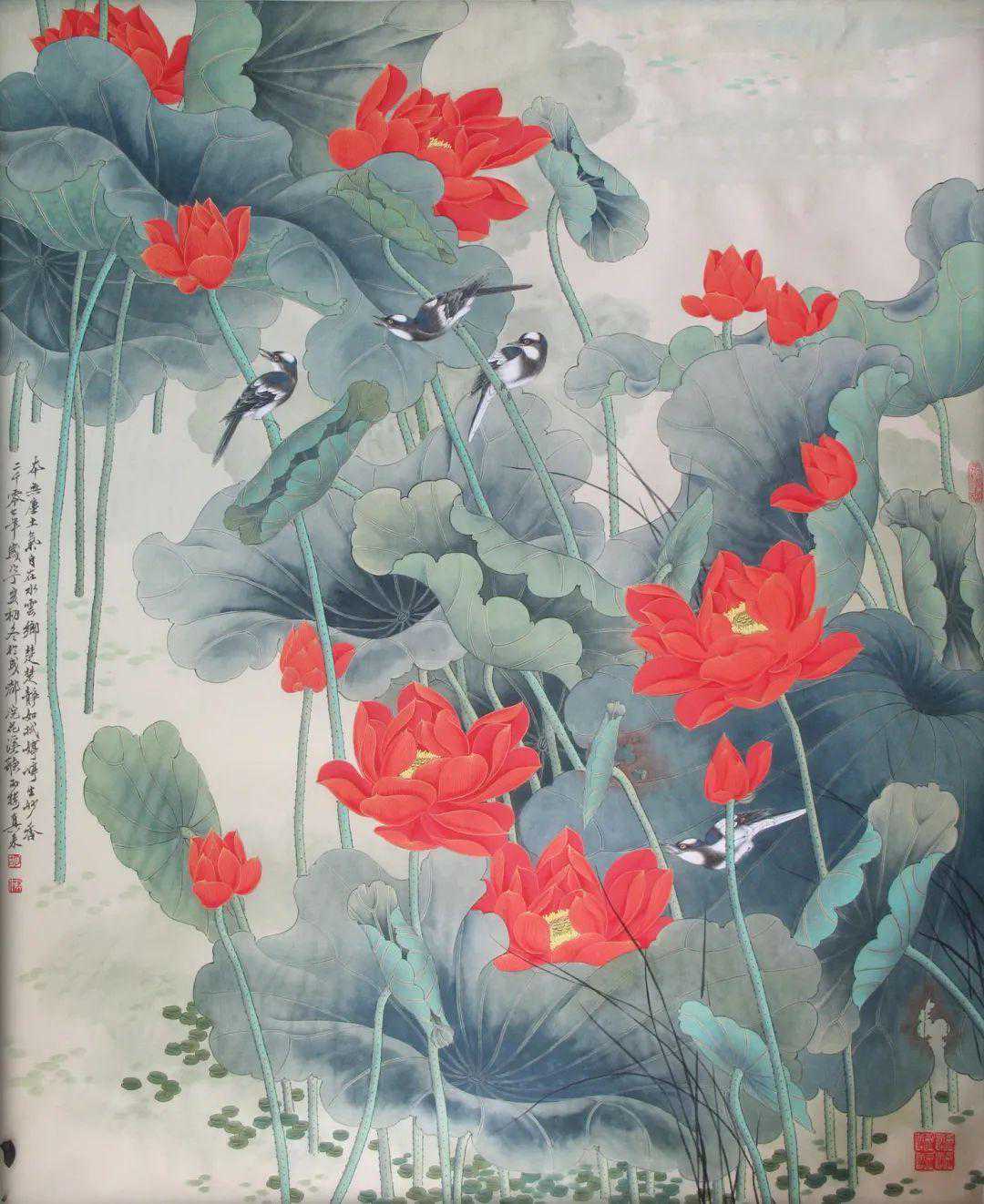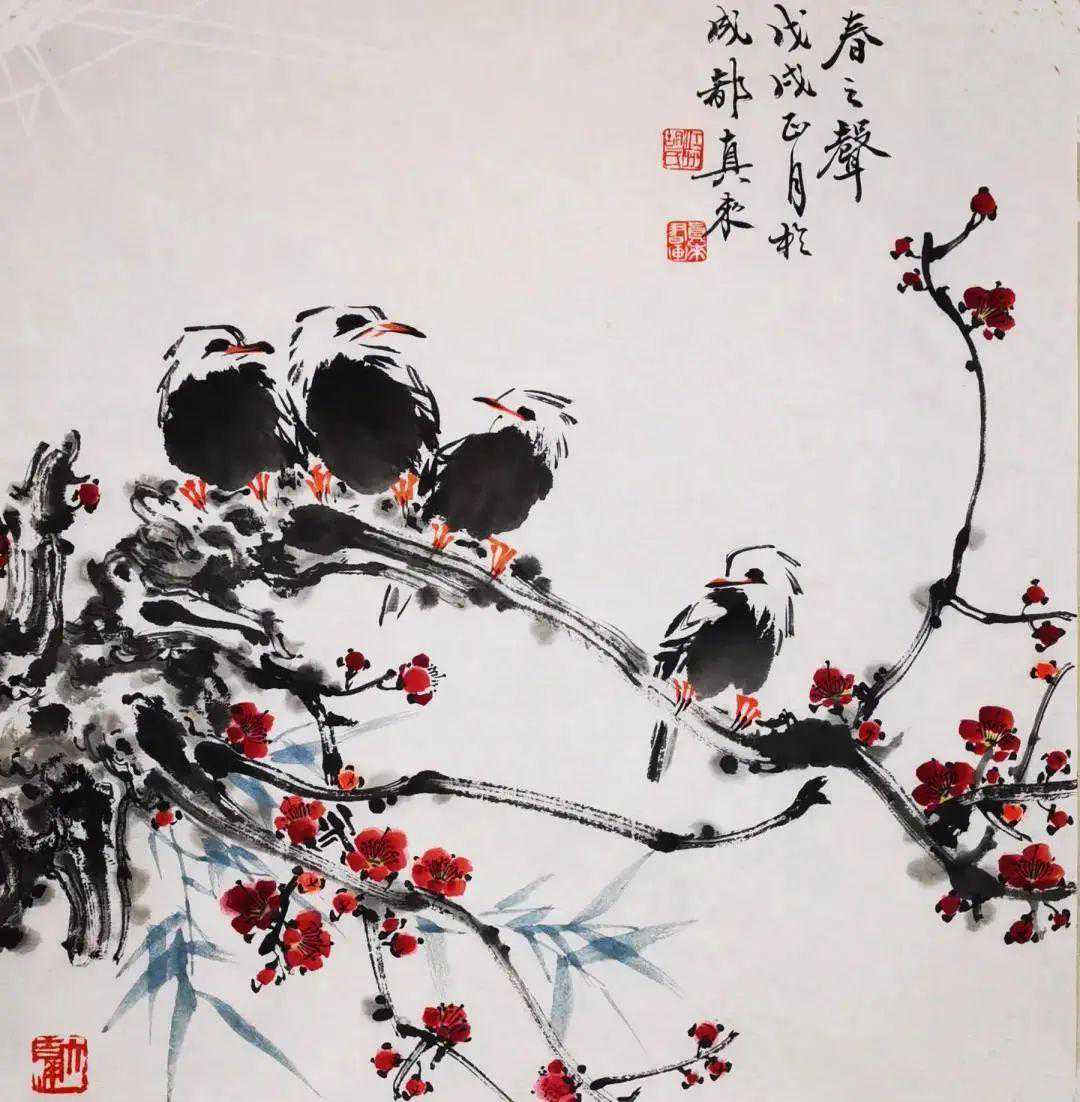 上世纪90年代后期,胡真来就逐渐走出已取得重大成就的工笔细研和雍容华贵的画风,在工笔结合上探索出一条属于自己的路,这一时期的作品,更加突出书写的意识、书写的笔墨、书写的形式,成就颇丰。所出花卉翎毛、飞禽走兽,笔调活脱,色墨艳丽,客体的生命节律、主体的精神感悟、丰富的文化内涵,内在的“真骨”、“神气”跃然纸上。