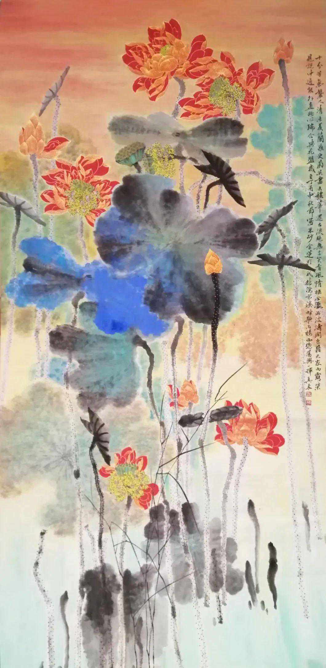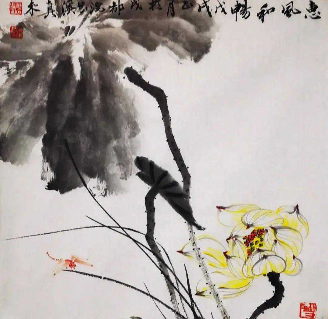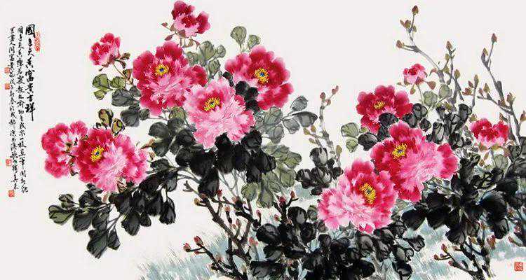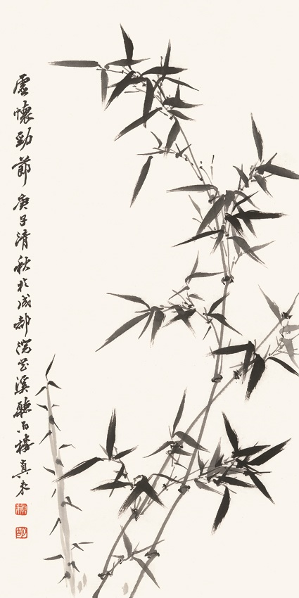他的写意牡丹、荷莲、墨竹、兰草、菊花、石榴配以花鸟都堪称上品,尤其写意山水功夫非凡,造诣颇深,极尽岭南画派代表人物高剑父之风,同时又刻上自己探索创造的独特印记。