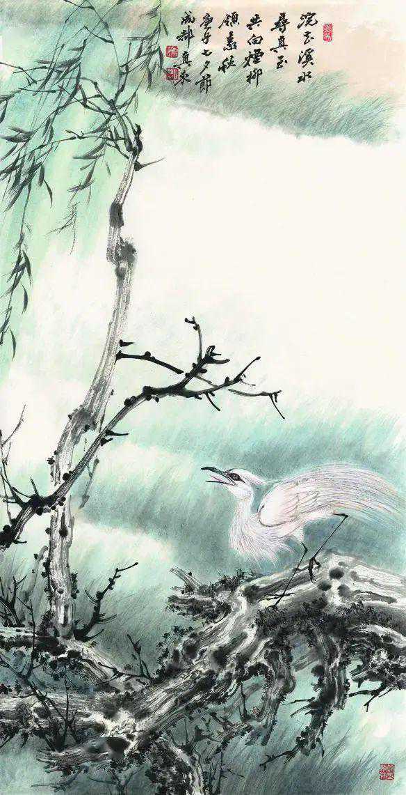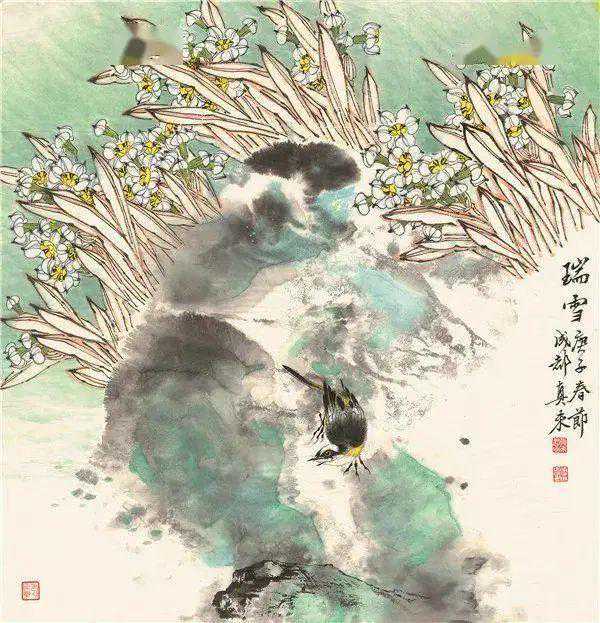 在很多人眼里,胡真来的花鸟画给人的印象最深,实际上,胡真来除了主攻工笔和写意兼擅的花鸟外,也能山水、人物,其作品往往是独辟蹊径,令人瞩目。其原因在于,胡真来还是“大风堂”的再传弟子。“因为大风堂及其弟子有一个显著的特点,那就是山水、花鸟、工笔、写意都要能画。”