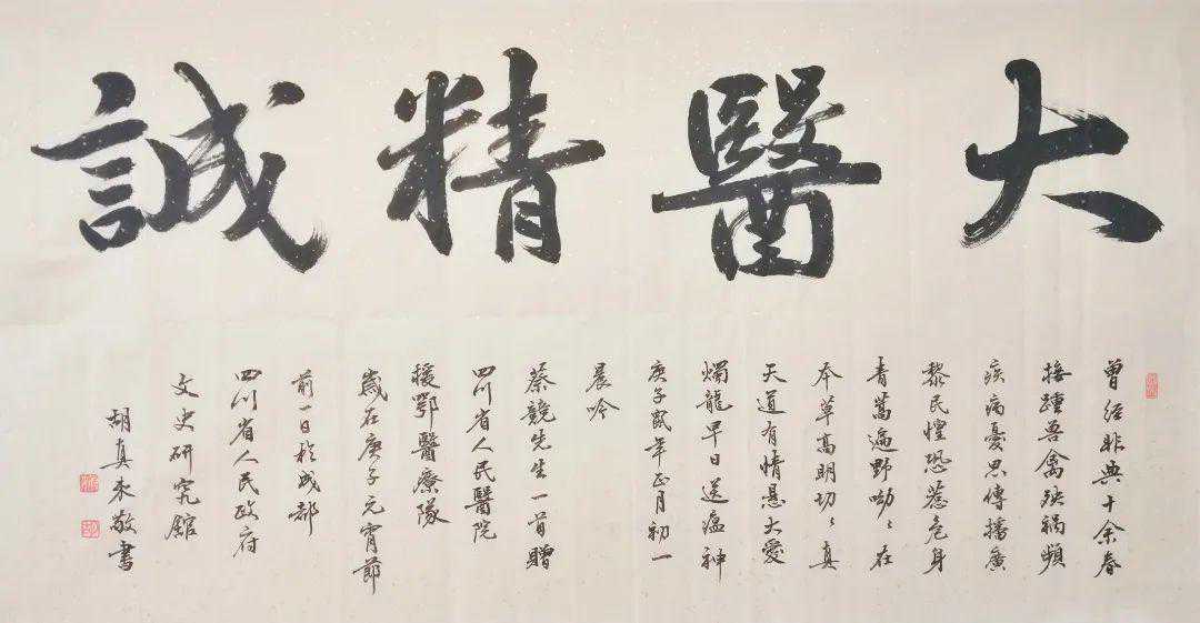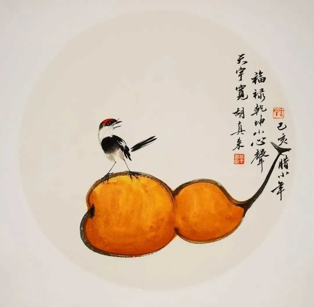 另外,胡真来还是一位有着独特个性的书法家,其书法庄重道正、宁静清雅,给人以浑厚朴真之美。每逢作画,心将自己在创作过程中所思、所想、所喜、所忧,或对世态人生的感悟,借画之盈尺题跋形式表达出来,使画面整体充满诗情画意,贯穿哲学素养,融入诗文功力,打上金石印痕,引发读者深深的思考。