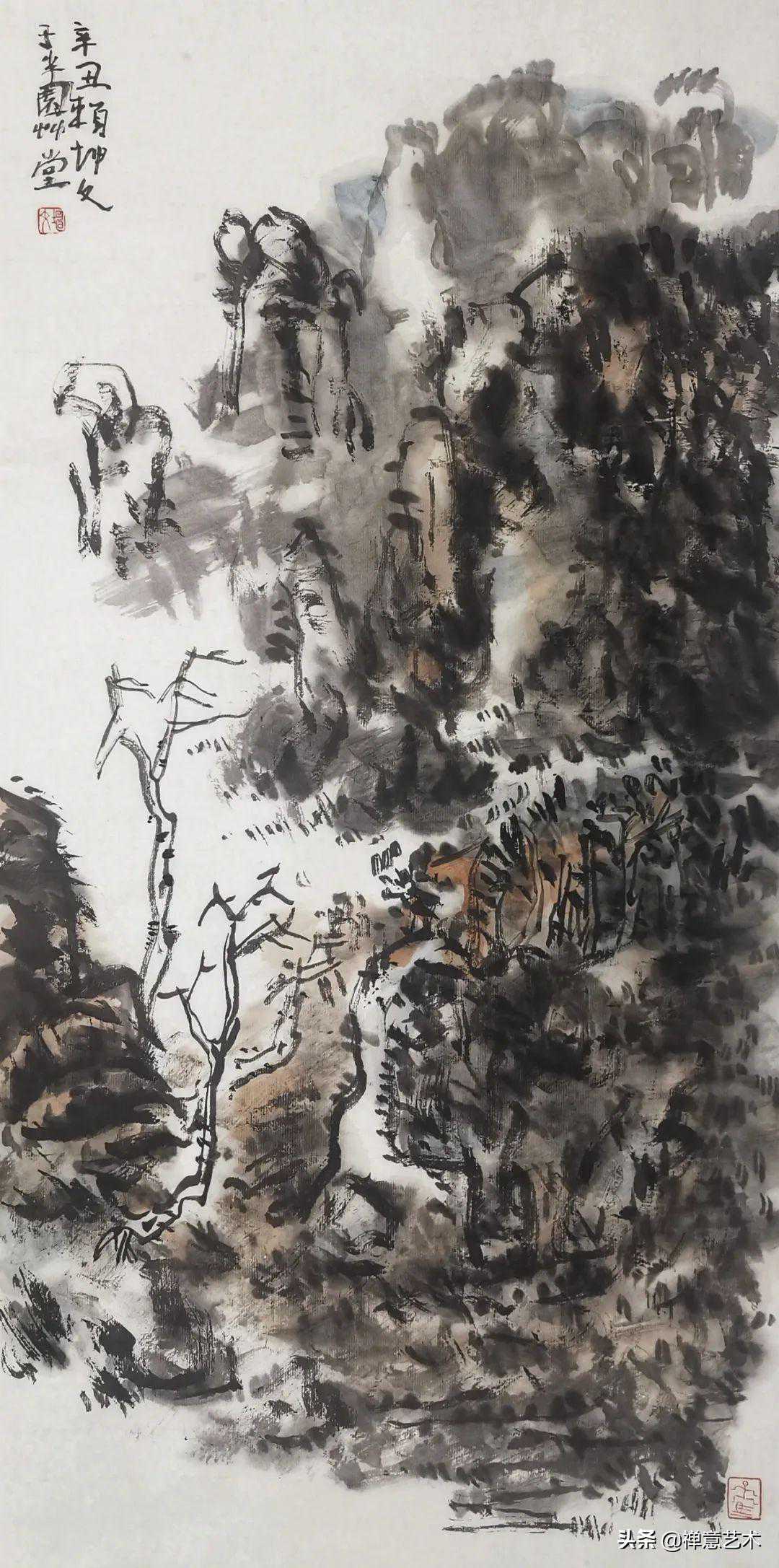 本期分享的书画家是赖坤文。感恩一家老师推荐,这两年陆续有写过赖兄的文章,今天是第一次近距离观察原作。本次北京艺人行组织并展览的作品之中,主要是其山水画作品和少量花鸟画作品,同时也感恩北京艺人行提供的部分文字和图片。其文首的第一幅作品就颇有担当的禅意味道,其花鸟画之中的第七幅和第八幅更是深得大写意精髓,用笔老辣,构图险峻,亦是精品。赖兄以书入画,以宾虹为手摹心追之对象,算是善巧方便。宾虹先生所创造的笔墨世界是中国当代山水画的高地无容置疑,但是其看着容易,上手极难,对篆隶笔法有较高的技术要求,与性情相契合也须深度的人文思考。赖兄有从小习字的基础,一门深入,深得宾虹之笔墨气韵。加上其长期以诗书为乐,题款内容颇见心性。在中国当代青年山水画家之中,亦是佼佼者。从构图形式、设色来看,其还有很大的探索、发展空间。诚愿北京本次展览活动圆满成功,并因缘际会,走出龙岩,艺术之路越来越好!